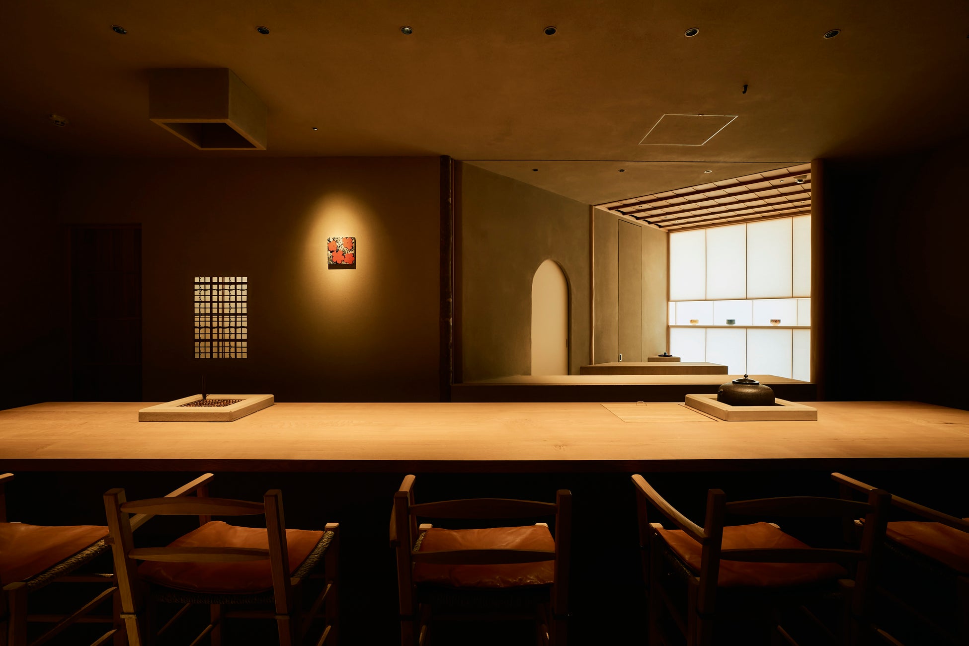和菓子職人の藤田凱斗と出会い、その文化や技術に触れて、強い衝撃を受けたのを覚えております。出来立ての和菓子だけが持つ、温度や質感にただただ驚いたと同時に、ショーケースや箱に入った和菓子ではなく、職人が目の前で仕上げたものを提供したいという想いに至りました。また、和菓子に合わせるのは当然お茶という考えが多い中で、茶士とともに茶の湯を学んでその知見を高め、これまでの茶の概念が変わるような生産者との出会いを通じて、その素晴らしさも伝えていきたいという想いも強くなりました。そんな2つを組み合わせた、まだ日本の飲食シーンでは珍しい和菓子のコース仕立て。ぜひこのチャレンジにお付き合いください。