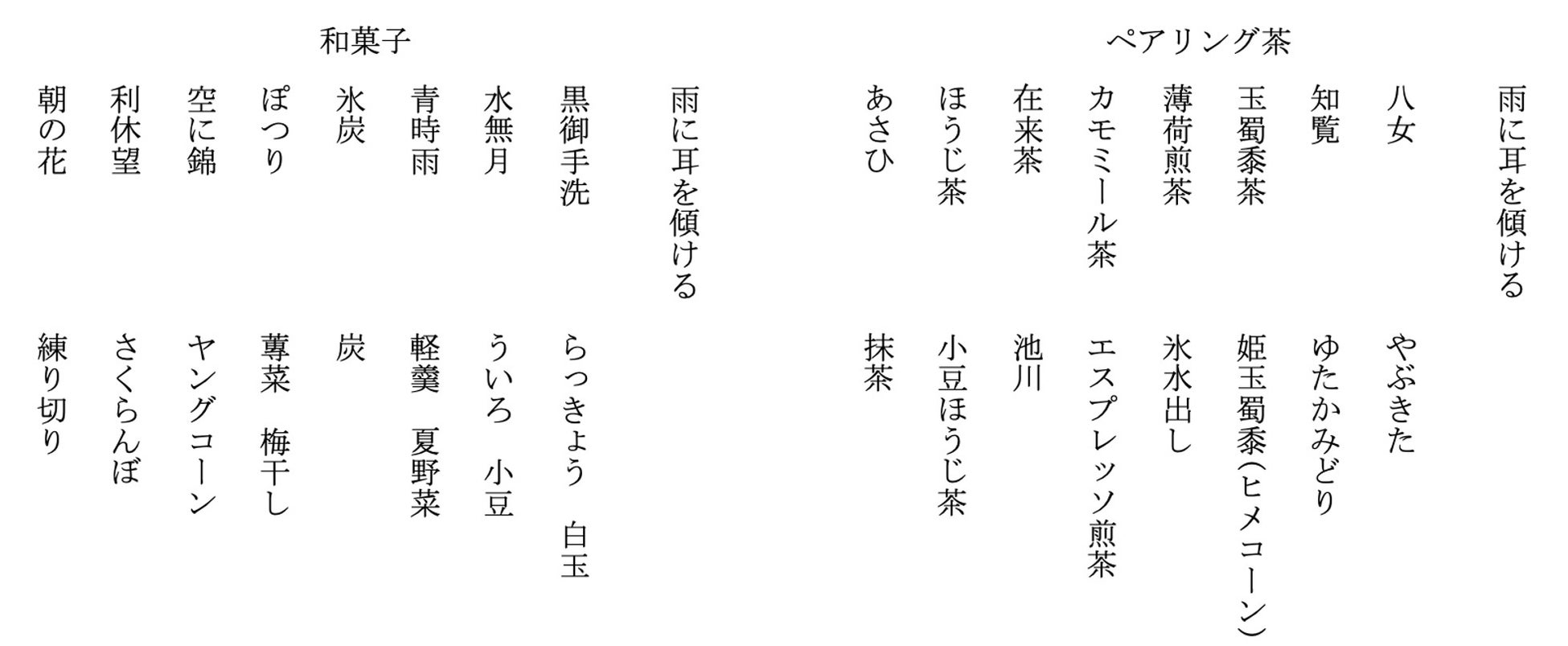 「九九九」が誇る和菓子の温もりや繊細な口溶け、お茶とのペアリングを心ゆくまでご堪能ください。