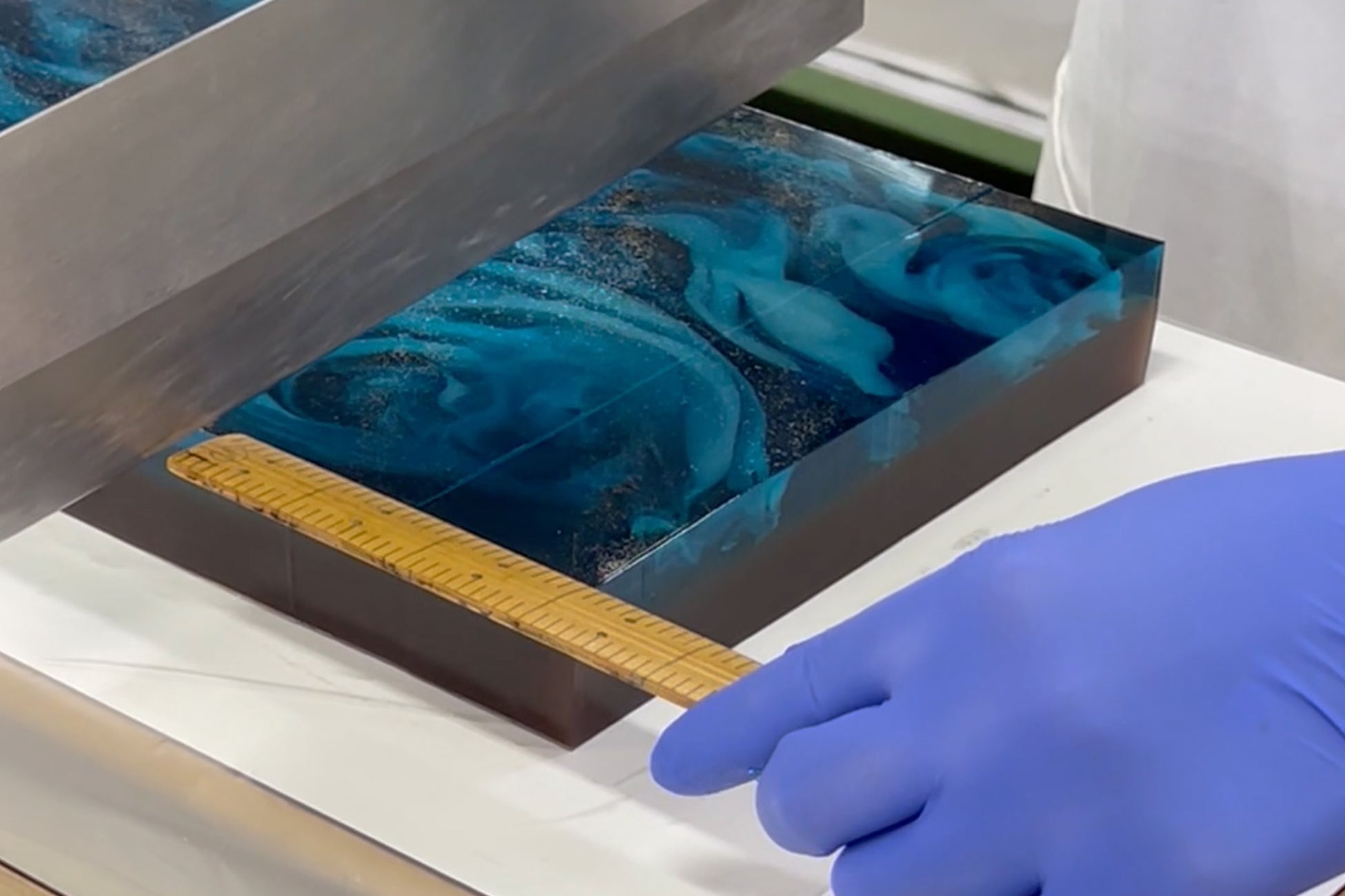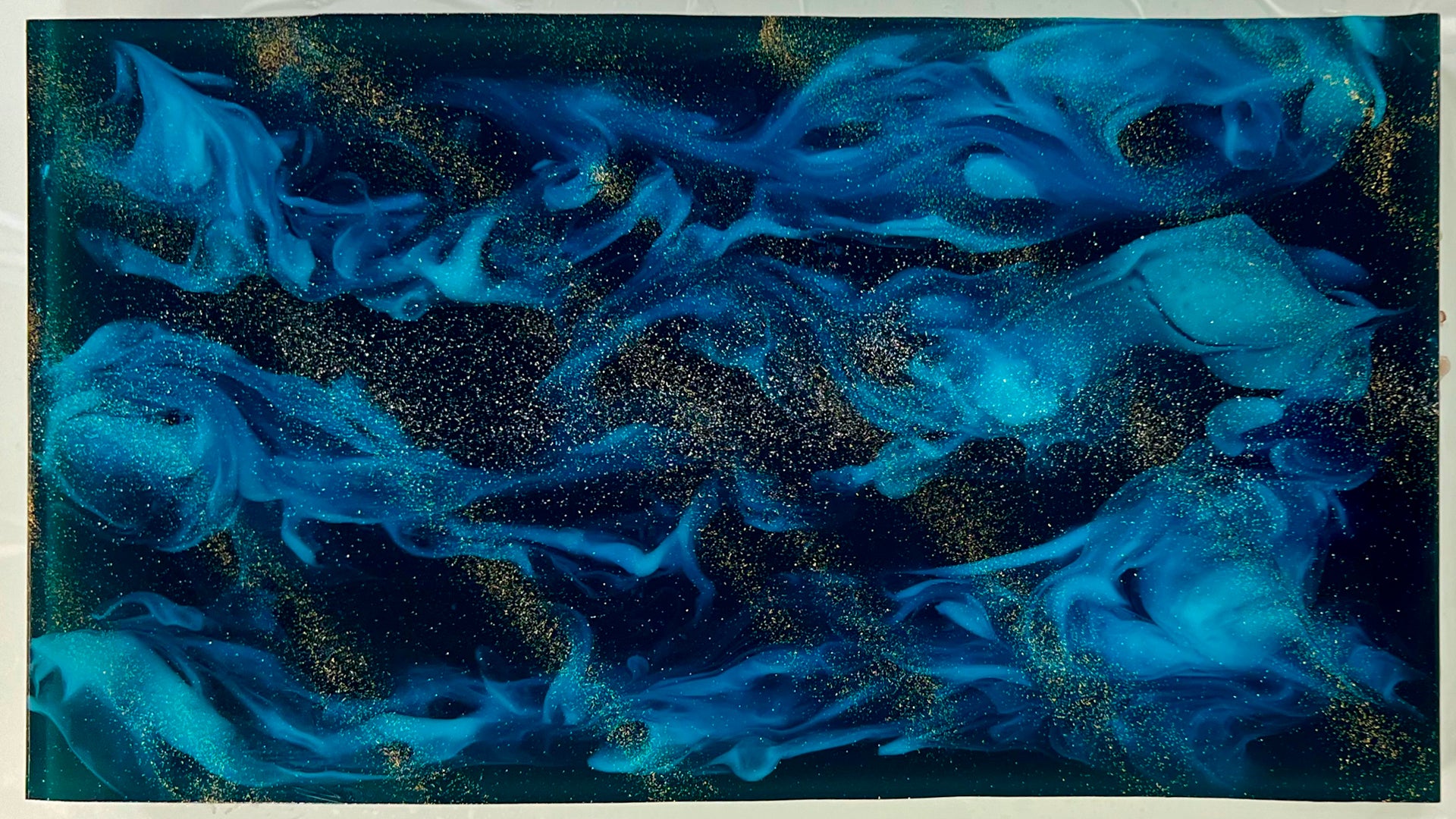 瑠璃色の夜空に、大小の星がきらめく意匠。その中で職人が特にこだわったのが、夜空に流れる雲の表現です。錦玉が固まりきらないわずかな時間のなかで、白く流れるような雲を描き、立体的に描く技法には、職人の深いこだわりが込められています。