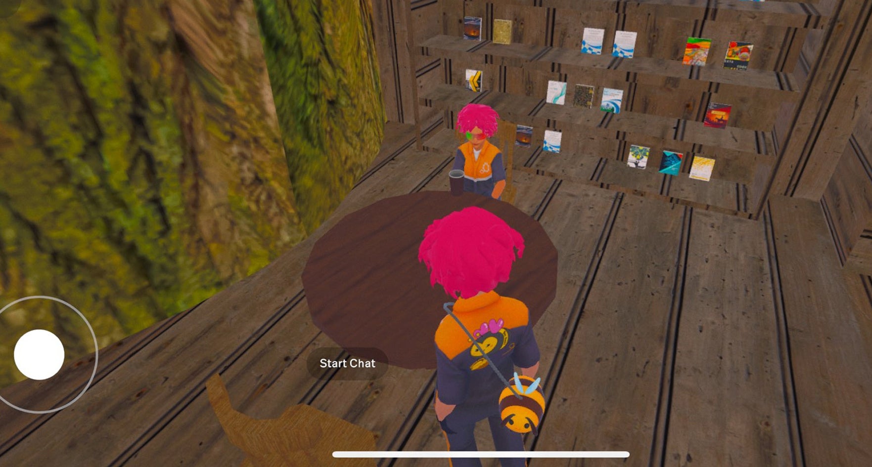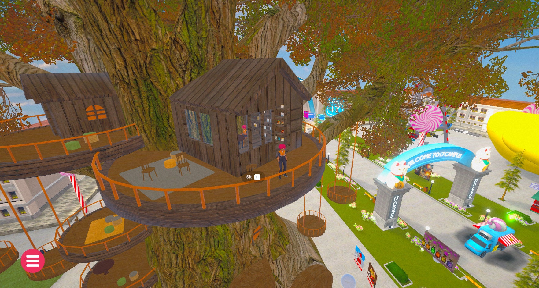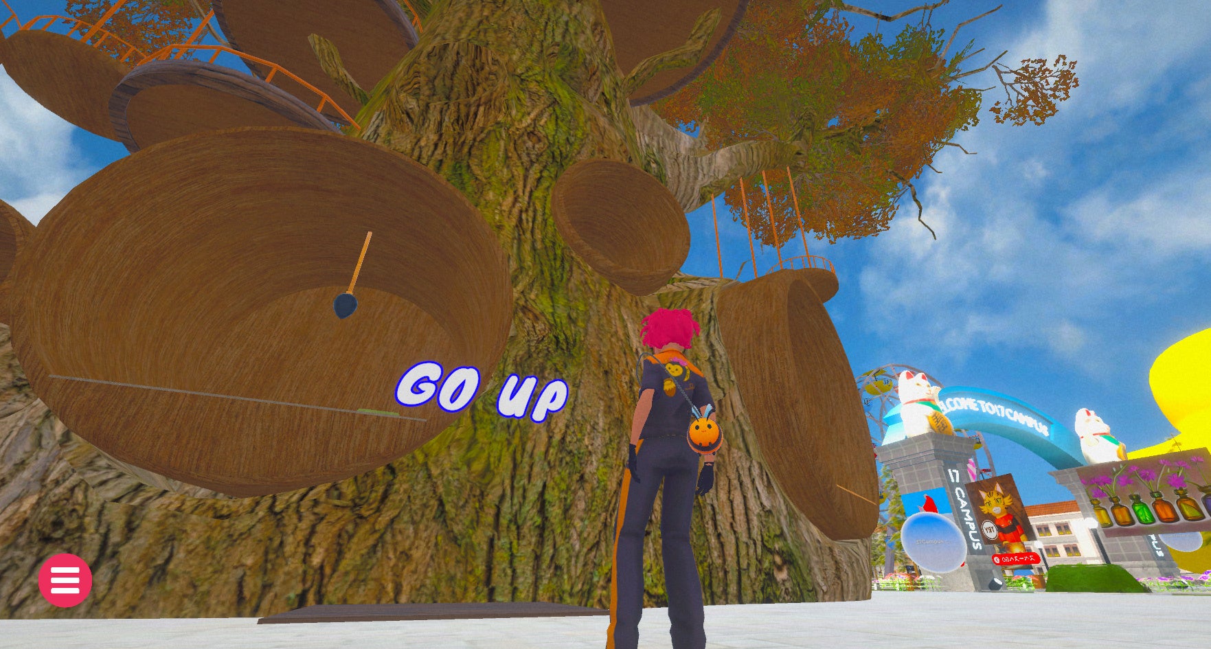 ■PCから体験する:URLをクリックし、メタバースワールドに入り、「木の上」に上がって椅子に座ると対話が開始します。Unityの制限により、PCからは日本語が入力できませんが、ローマ字入力での対話が可能です。
