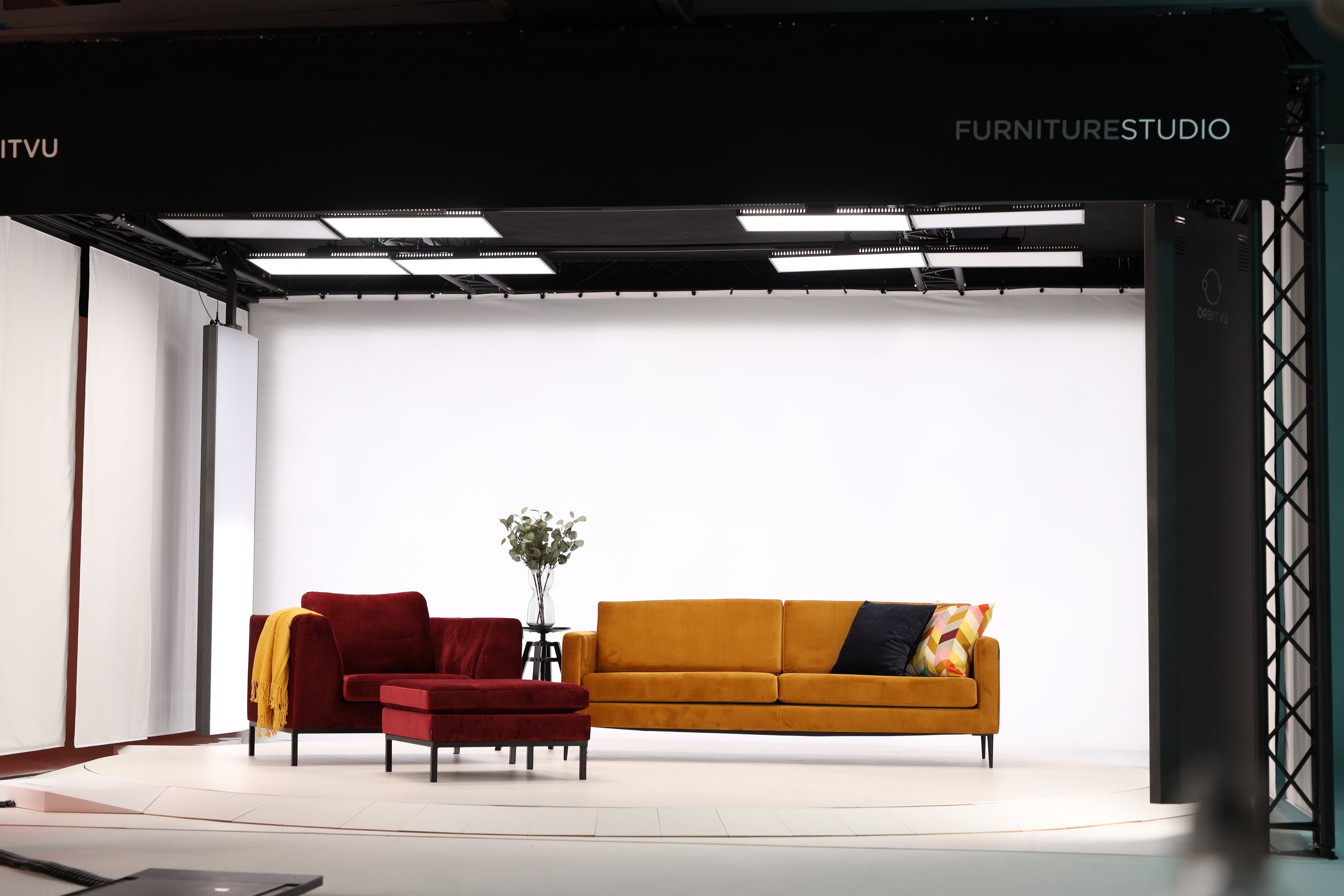 オービットブイユーのアパレル撮影において最大サイズを誇る本機材は、モデルや等身大トルソー用の照明を備えたステージと、ビデオ撮影に最適な電動カメラスタンドを備えています。