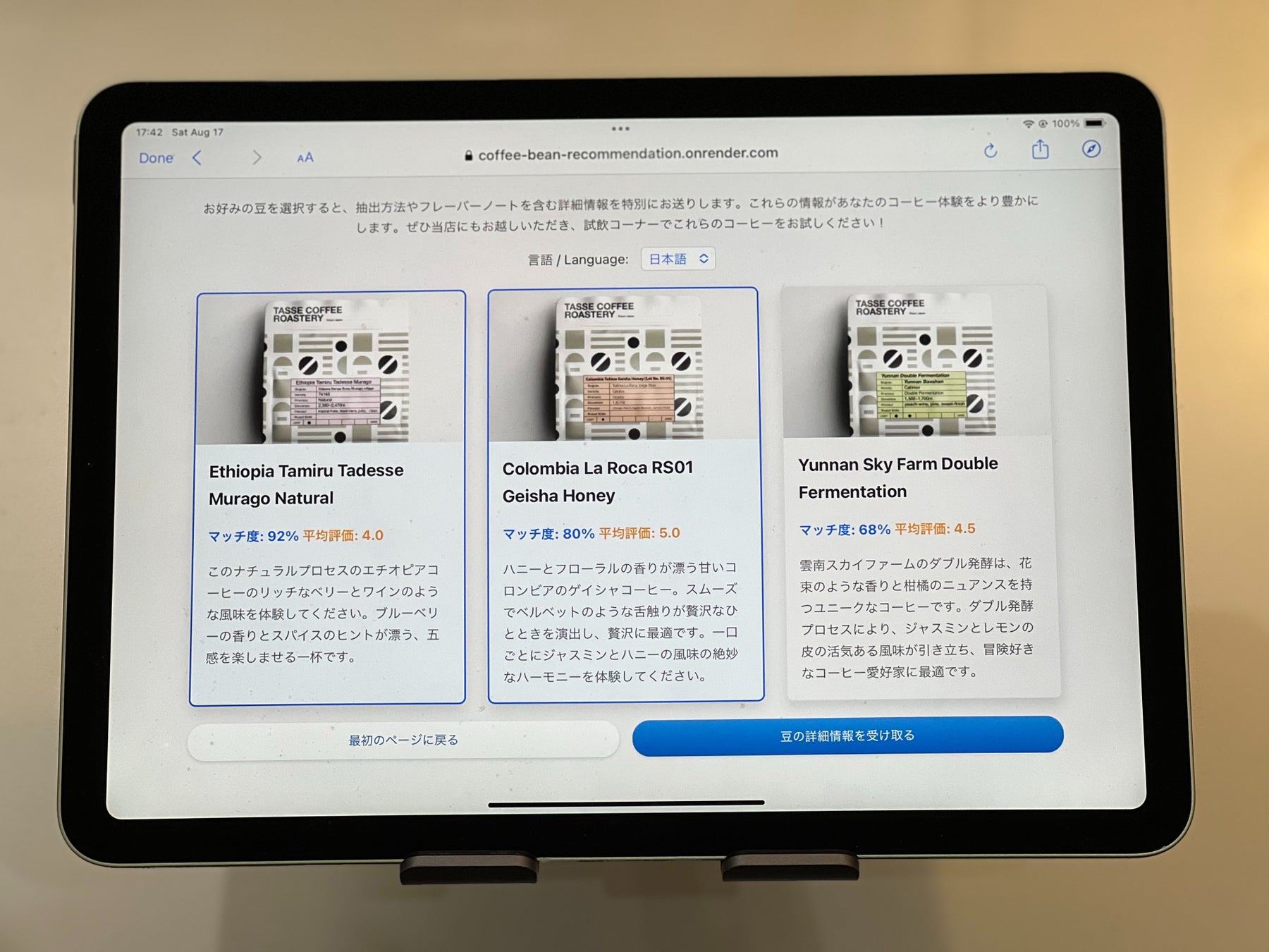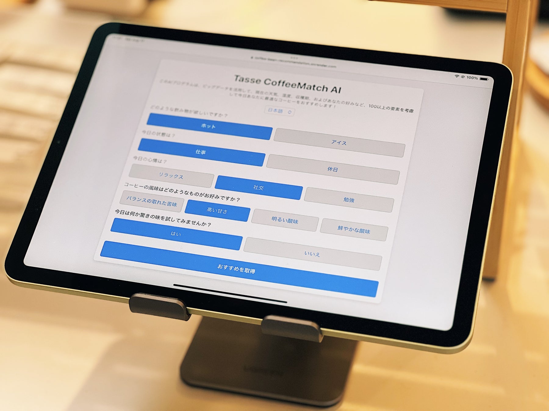 ぜひ、タスコーヒーロースタリーにお越しいただき、CoffeeMatch AIで未来のコーヒー選びを体験してください。あなたにぴったりのコーヒーは、ボタンひとつで見つかります。