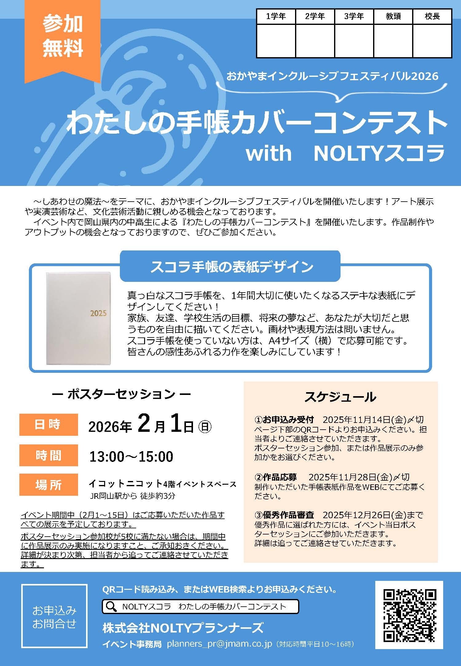 後援 :岡山県教育委員会、岡山市教育委員会、協同組合連合会岡山市表町商店街連盟、