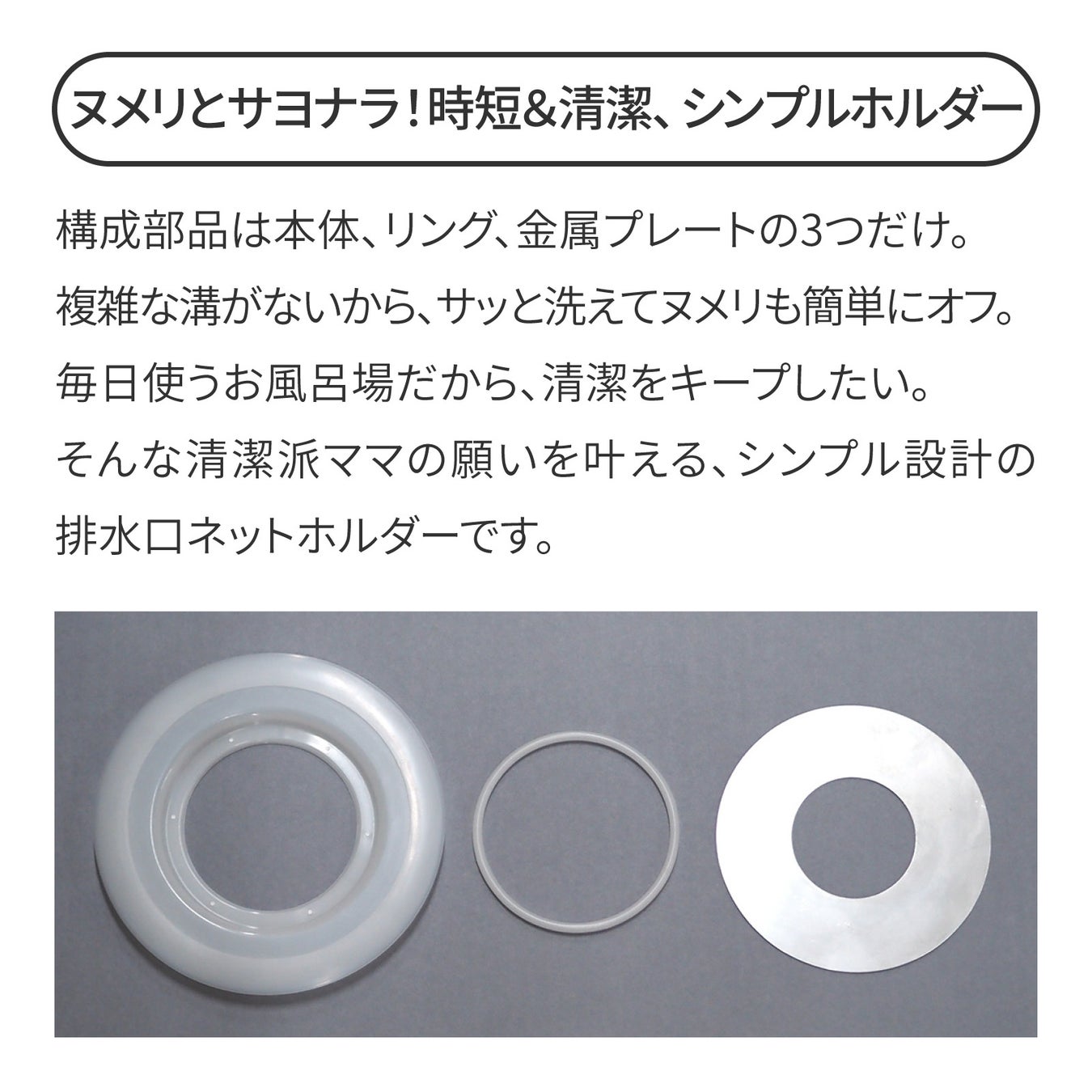 【新商品】お風呂の排水口を清潔に!ゴミを見せない「かくれんぼネットホルダー」