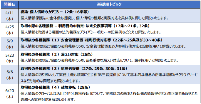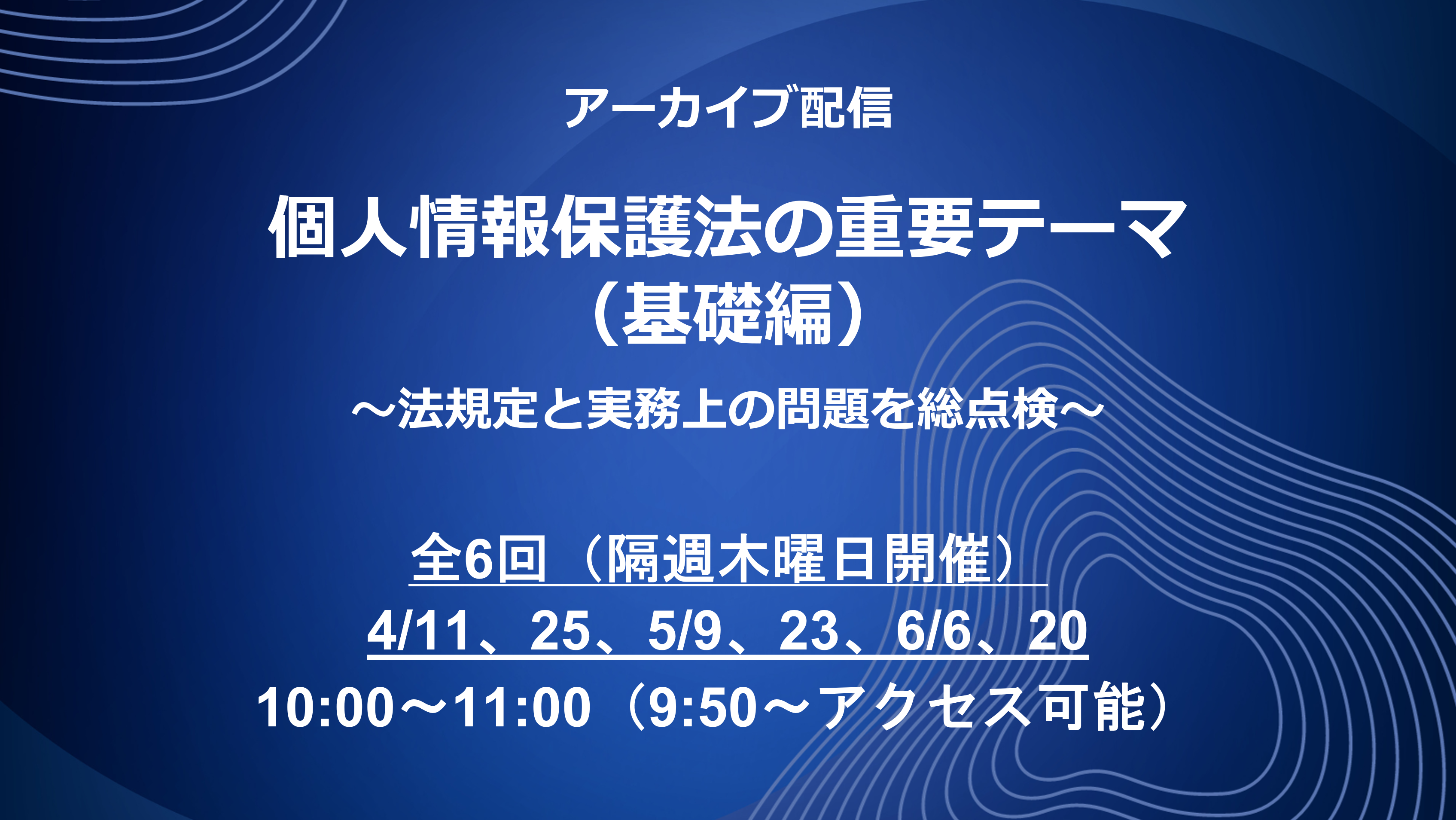 Webセミナー「個人情報保護法の重要テーマ(基礎編)~法規定と実務上の問題を総点検~」の動画配信が決定