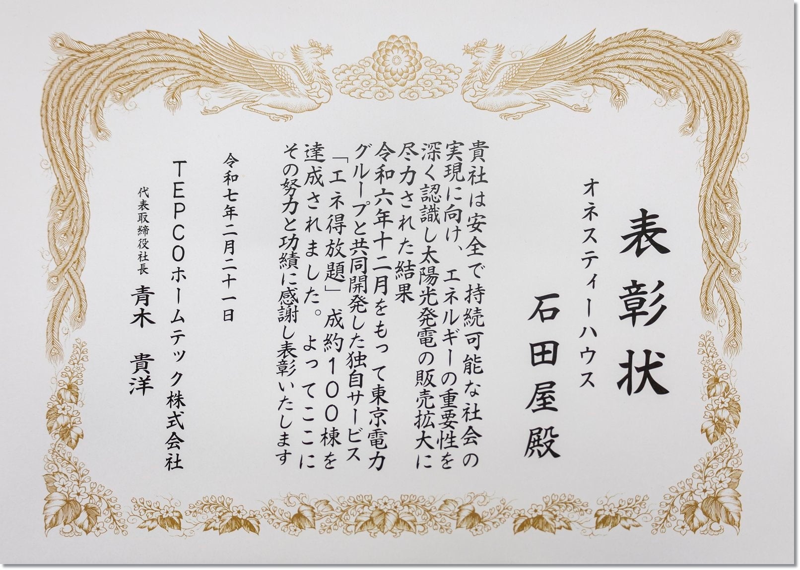 これらの功績が認められ、東京電力グループより感謝状を授与されました。
