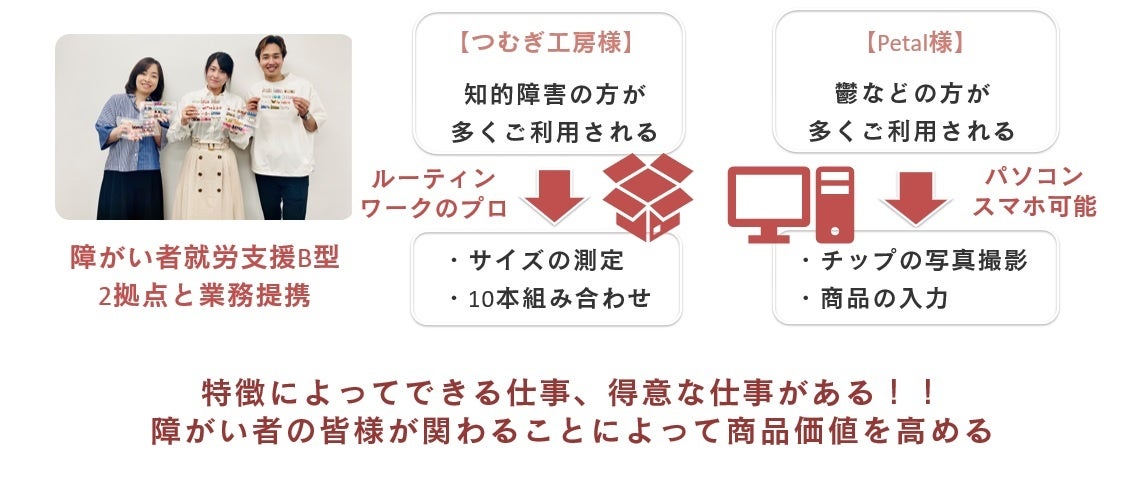 同年2月に静岡県浜松市のスタートアップがリリースした「ネイルチップ専用SDGs通信販売サイト/ネイルドネーション」が、障がい者就労継続支援B型のつむぎ工房とpetalと業務提携したことをお知らせします