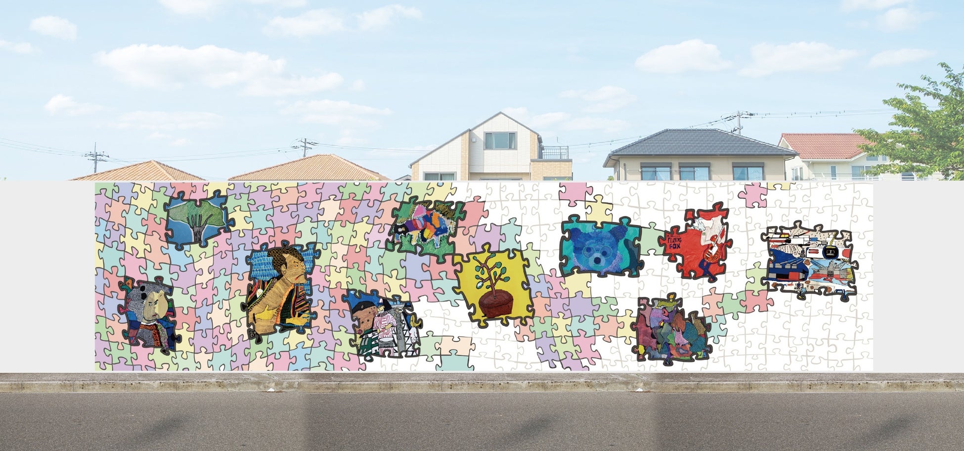安達さんの作品からは、稲継工務店、学生さん、障がい者アーティストの全ての存在が感じられ、地域の方にも分かりやすいパズルのデザインの明快さがあり、関係者全員の繋がりを感じました。難しい課題の中、それぞれがパズルのピースとなり、多様性を感じられる素晴らしい作品です。