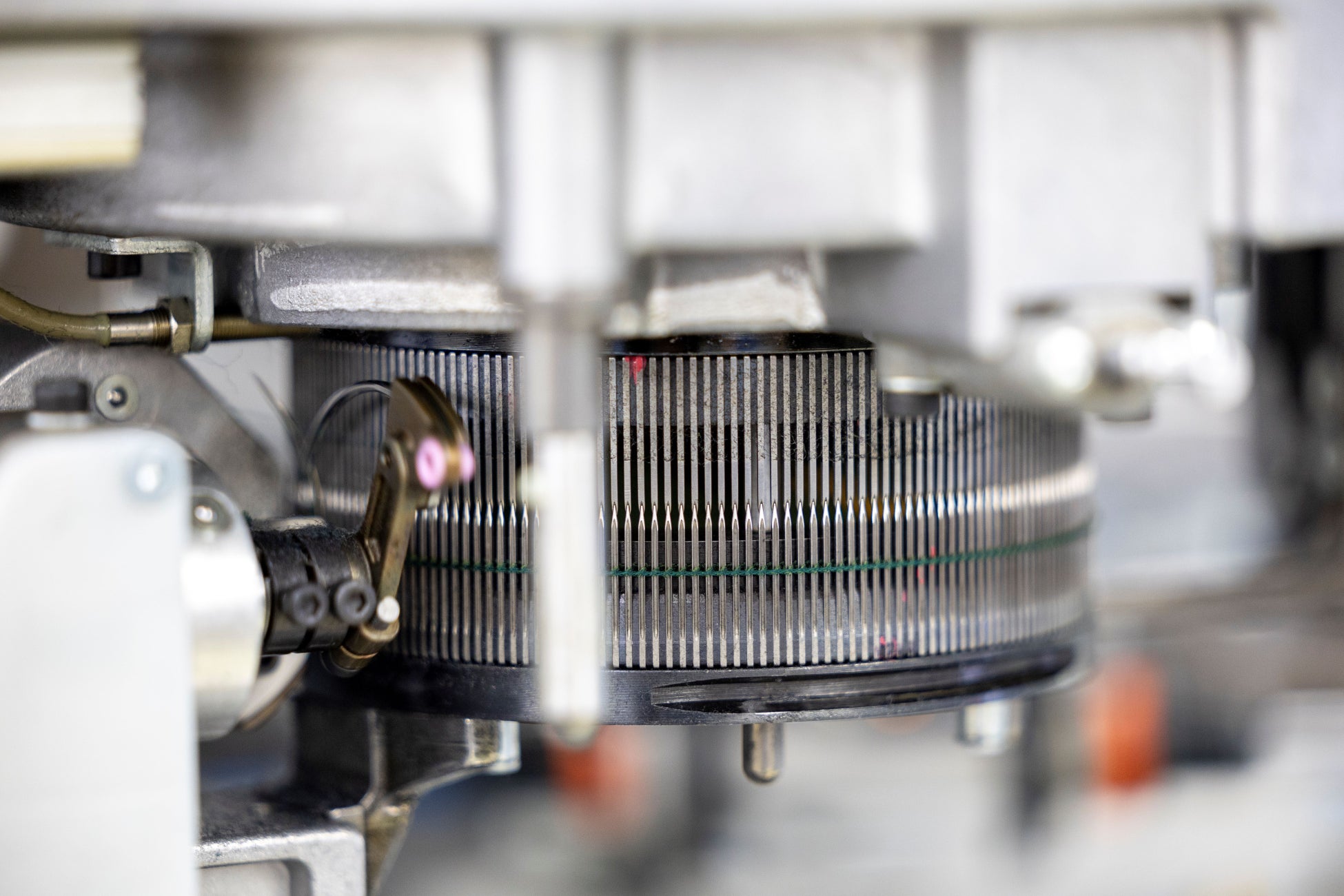 通常、縦糸と横糸で織り上げる生地に比べて、筒状に編み上げる靴下は、構成上タータン柄を表現することは至難の業です。それぞれの柄糸が色鮮やかに出るように編み目を調整しながら、試作を何度も繰り返して、ようやく商品化することができました。国内随一の繊細な技術を受け継ぎ、研鑚を積んだ職人だからこそ、完成させることができたとも言えます。
