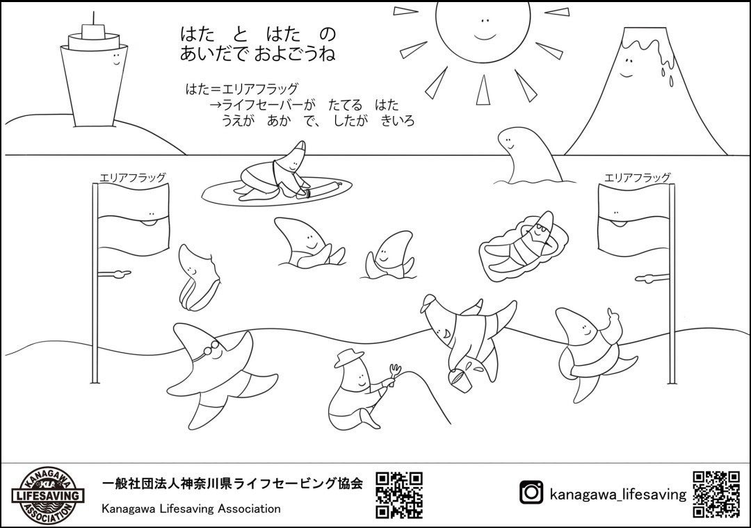 あなた自身、お子さんや家族、あなたの大切な人が自分の身を自分で守れるように、このぬり絵や絵本で遊びながら学んで楽しく「安全に」海で過ごしませんか。