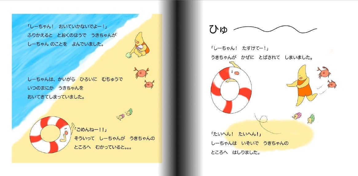 今回は夏休みに海で遊んでいる時の、浮き輪の「うきちゃん」との意外な「ひやり」を題材に、楽しく「安全に」過ごすためのお話です。