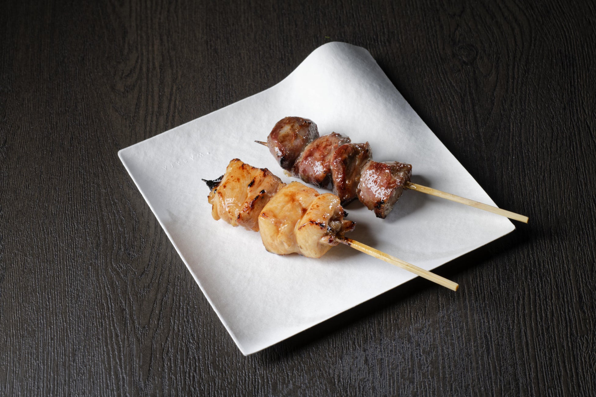 「焼鳥盛合わせ(かしわ串、砂肝串)」
