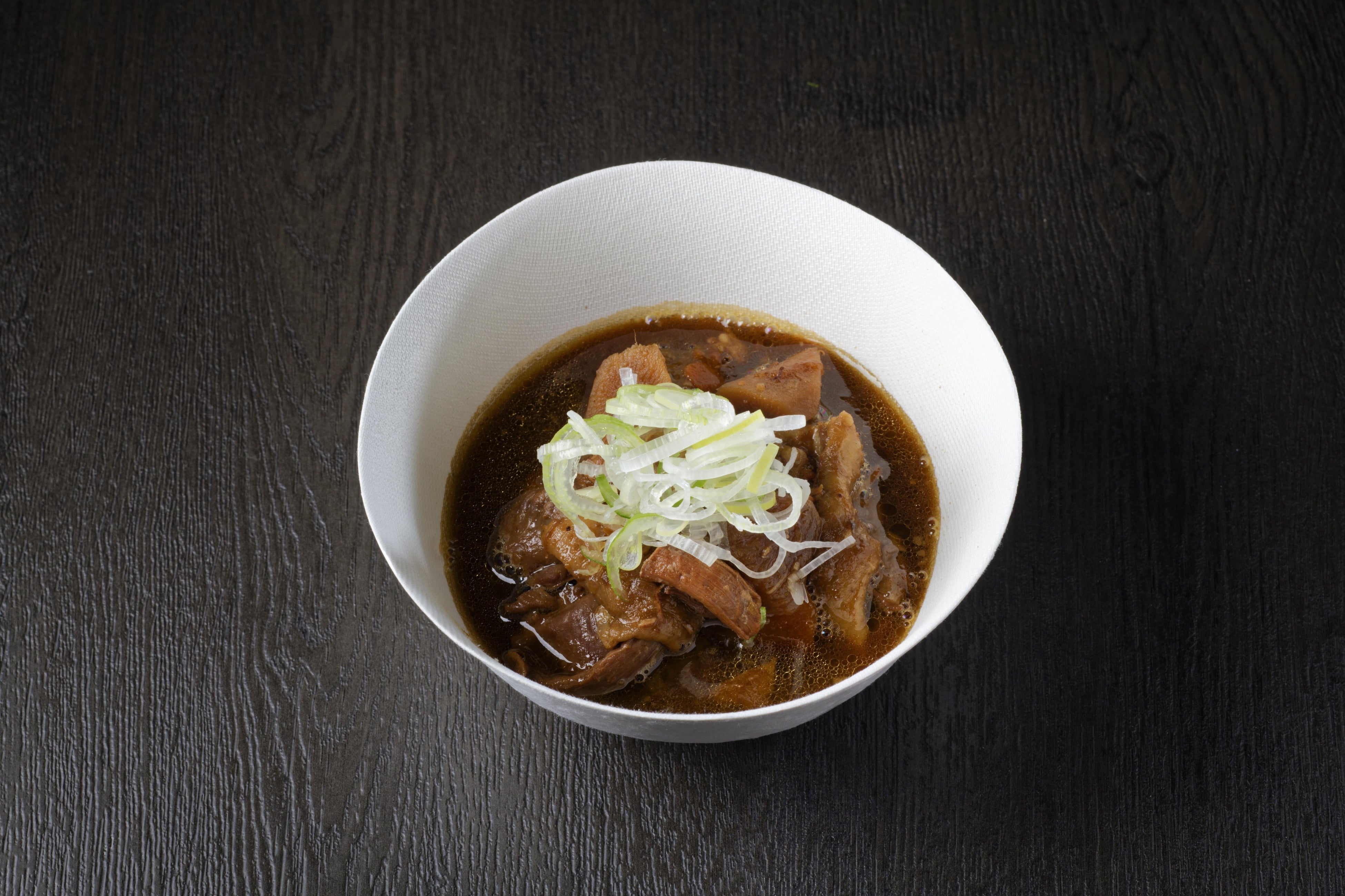福島県伊達鶏のもも肉と鶏もつ(首皮、砂肝、ハツ)を味噌ベースで煮込み、鶏だしの旨味が感じられる一品。