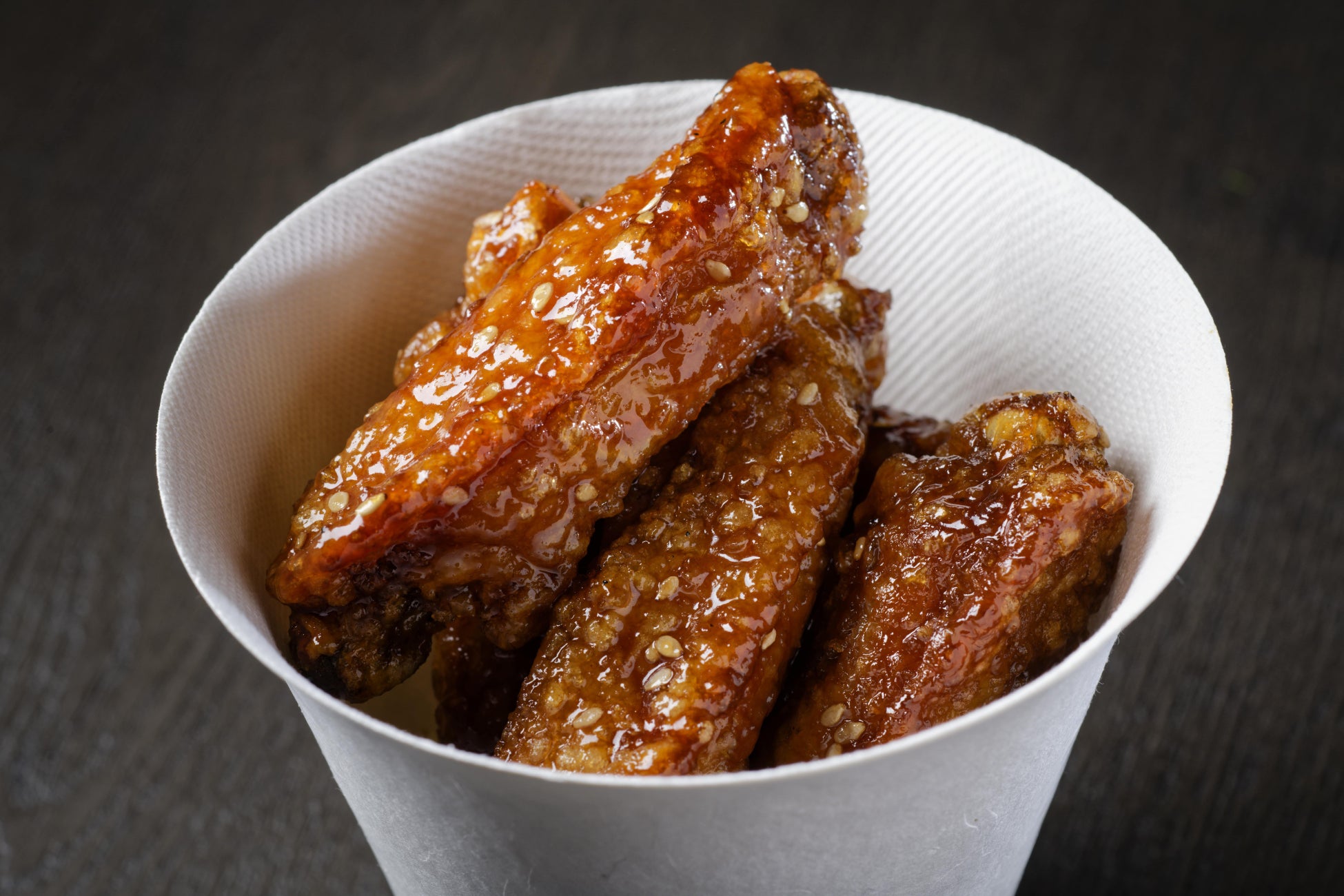 手羽中を高温でカリっと焼いて、鳥しき秘伝の壺たれで絡めた醬油ベースの甘辛チキン。