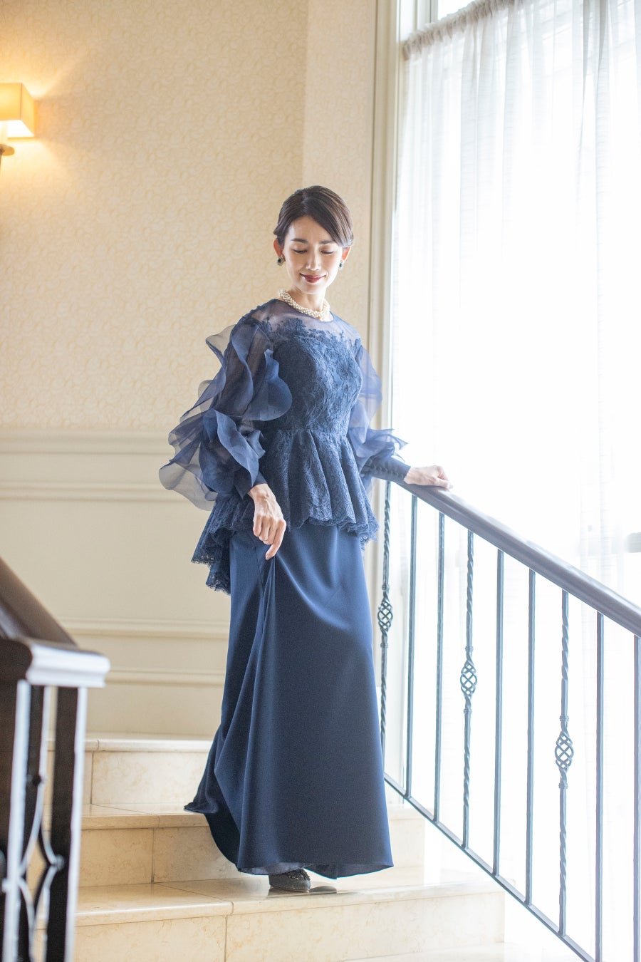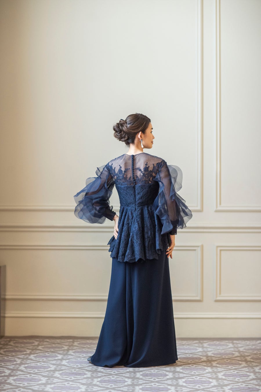 ベールダウンやお食事のシーンなど、所作によって揺れるラッフルデザインや透け感のあるシアー素材を使用したり。着物の袖のように、動きによって所作を美しく見せられる袖のデザインを採用しました。