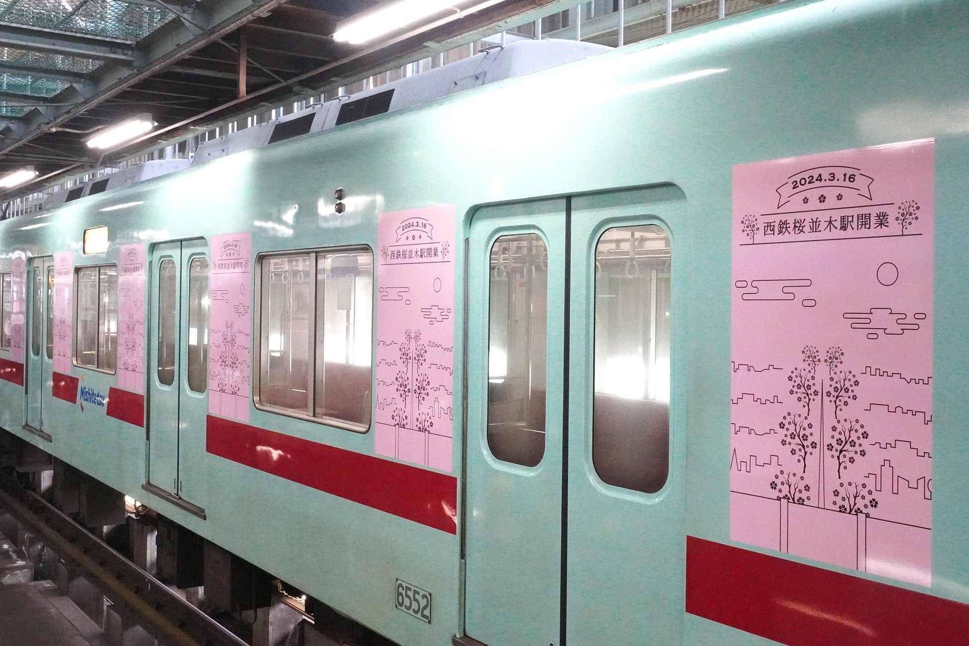 西鉄では同駅開業を記念し、キービジュアルをラッピングした特別列車「みんなの桜並木号」を、3月16日から4月末までの期間、運行いたします。