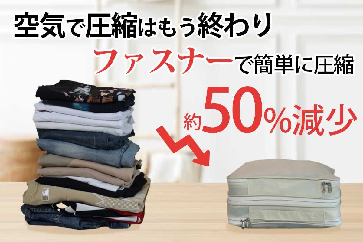 【新発売】10秒で50%減少!大容量な荷物を半分に。ファスナーで圧縮する「RETOO圧縮ポーチ」先行販売中!