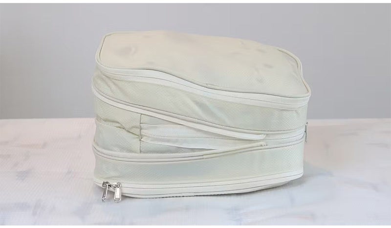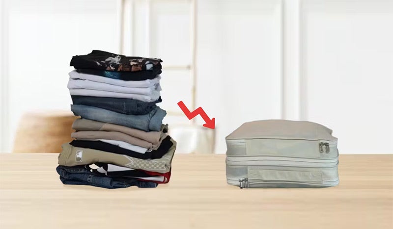 旅行中の荷物を圧縮ポーチに収納して、スーツケースの中がスッキリします。旅行や出張前のパッキングで大活躍します!