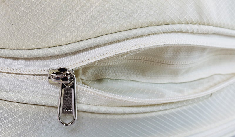 ポイント5.丁寧な縫製線と二重ファスナーで道具なしで手軽にファスナーの力で圧縮します。