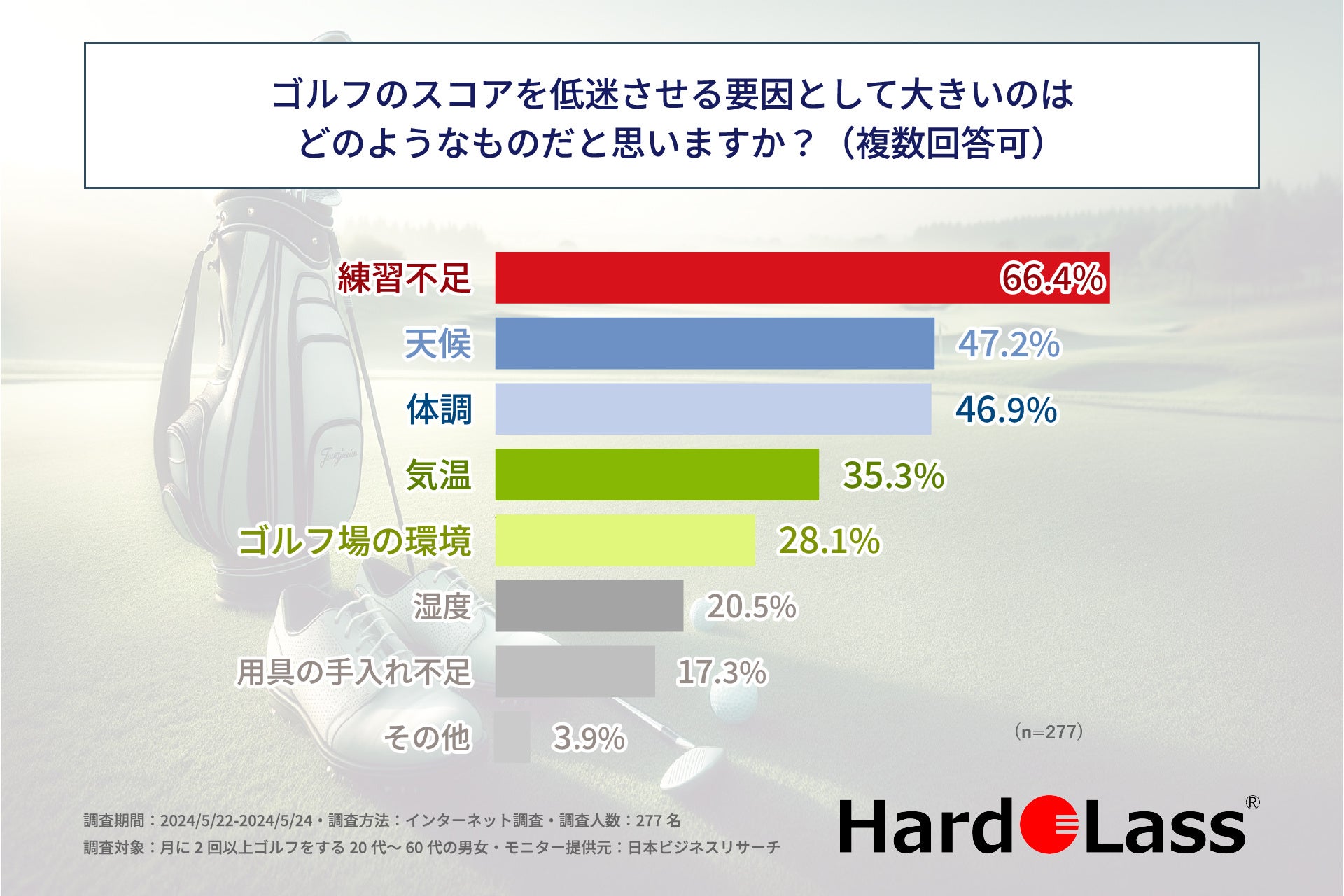 ・ゴルフのスコアを低迷させる大きな要因は「練習不足」、次いで「天候」と「体調」