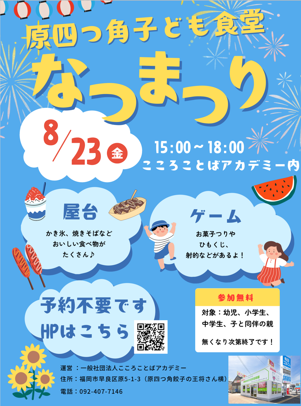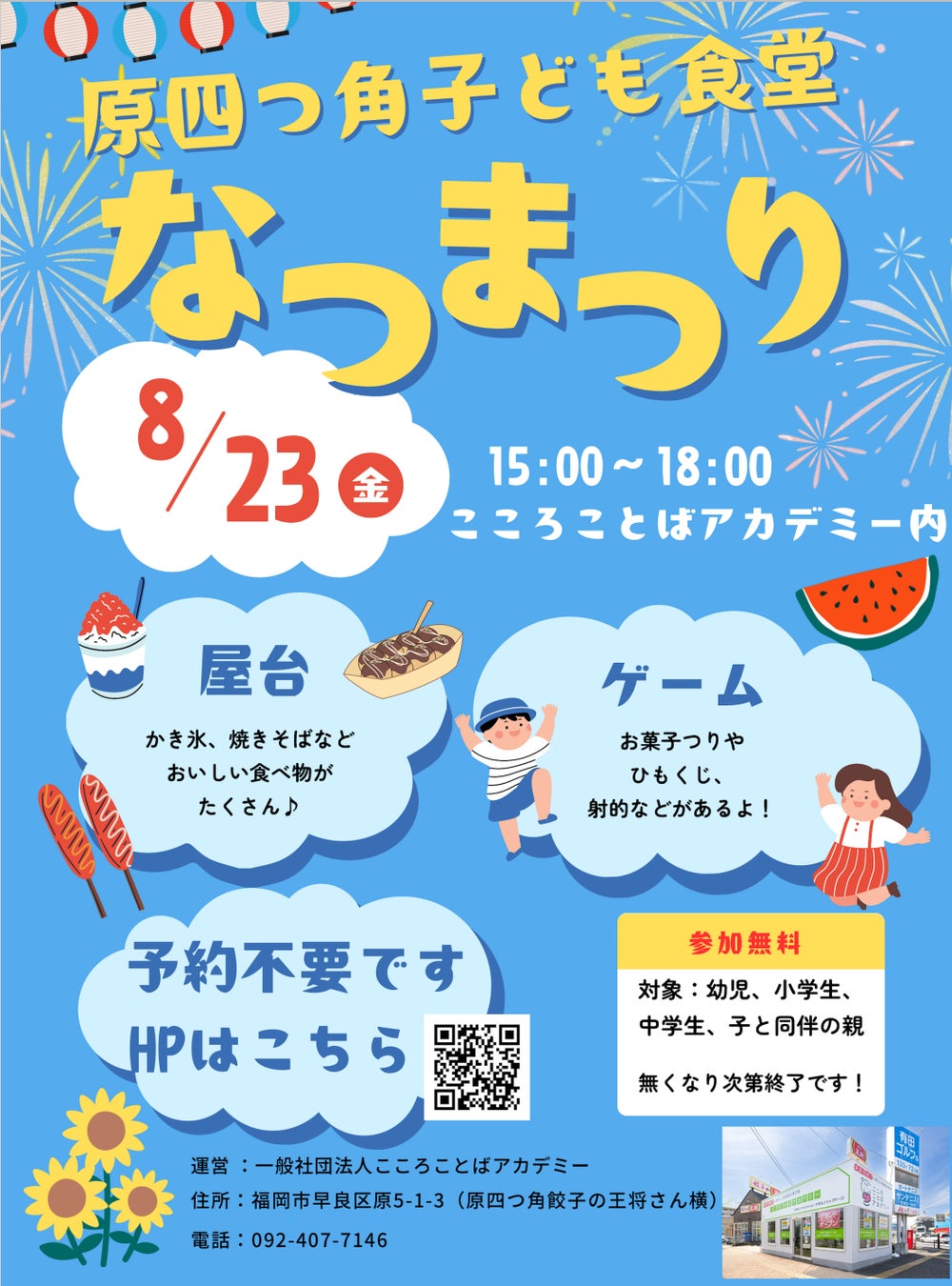 ※8月23日に予定している子ども食堂での夏祭りのチラシ