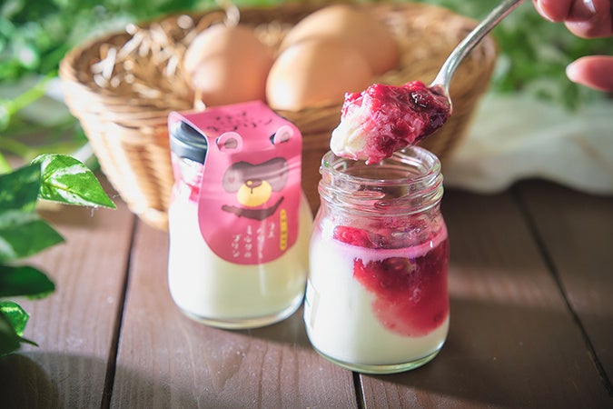 真っ白なミルクと果実たっぷりラズベリーが織りなす、かわいらしい見た目のプリンです。蓋を開けると鮮やかな真紅のラズベリーソースが顔を出し、ラズベリーの酸味がプリンと混ざり合って、果実の爽やかな美味しさを味わっていただけます。