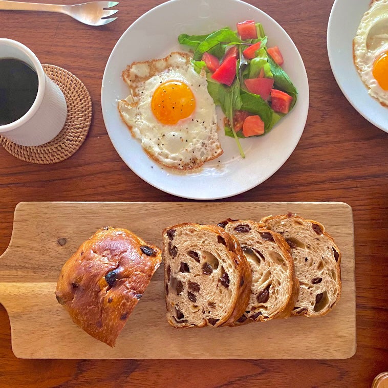 ぎっしりつまったレーズンが、生食パンの甘みとマッチして、最高の満足感を与えてくれます。「一度食べたらやみつきに」というその味を、ぜひ多くの方に体験していただきたい、そんな当店の大人気商品です。