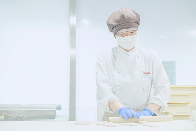 生地に使用する小麦粉は、これまで単一品種では商品化が難しいとされていた北海道十勝産の超強力粉「ゆめちから」だけを使っています。