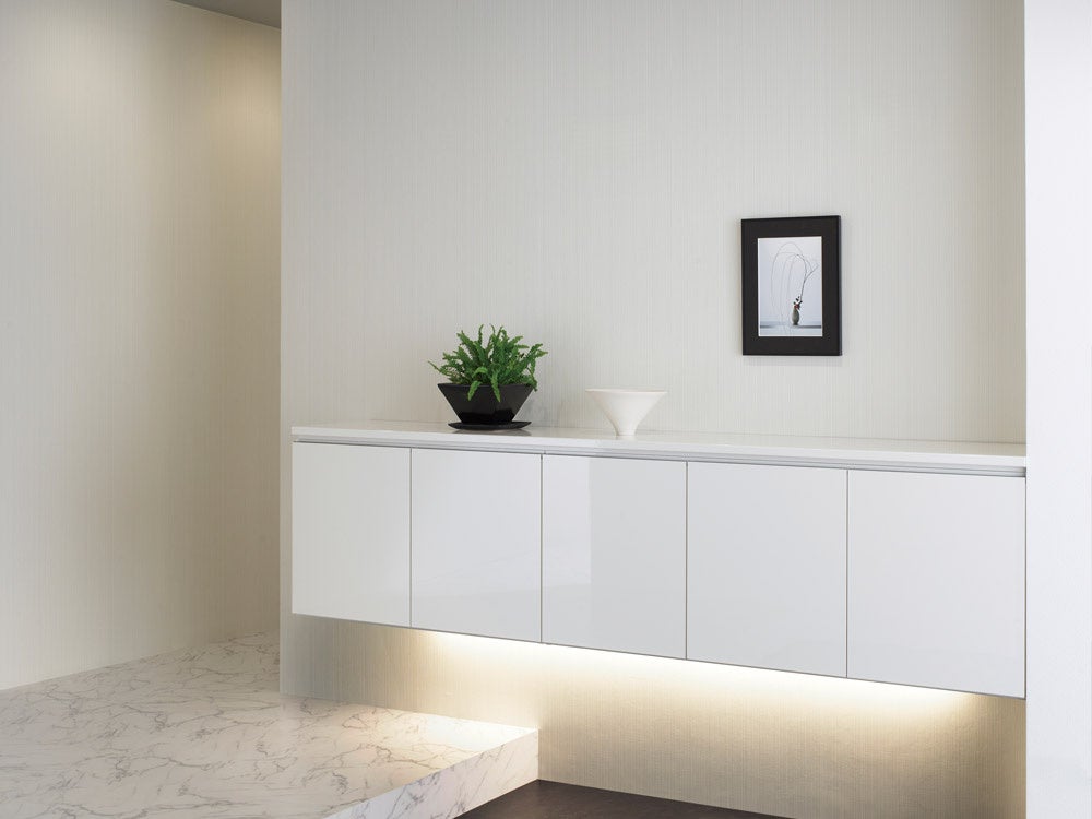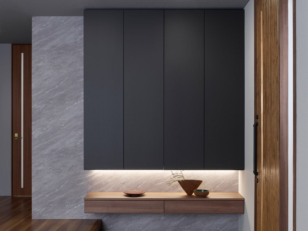 さらに、キャビネットの下に取り付け可能なLEDライトをオプションとしてラインナップ。間接照明として取り入れると、玄関がより上質で落ち着いた空間になります。