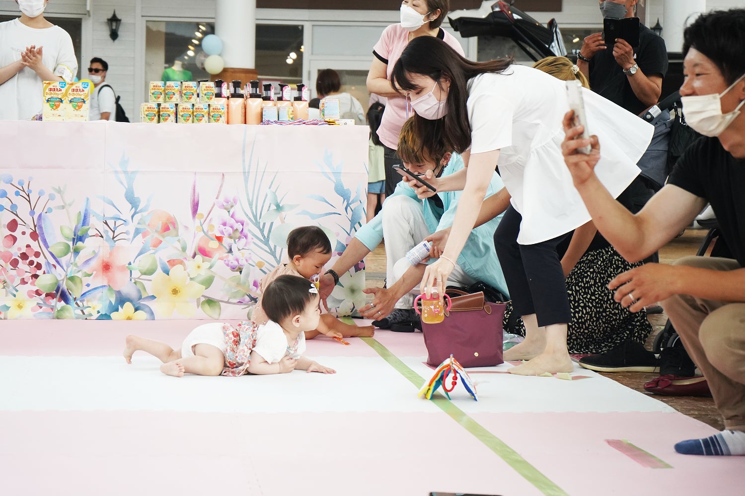 あんよ前の、ハイハイをする時期の赤ちゃんレースです。ずりばいでの参加も可能。