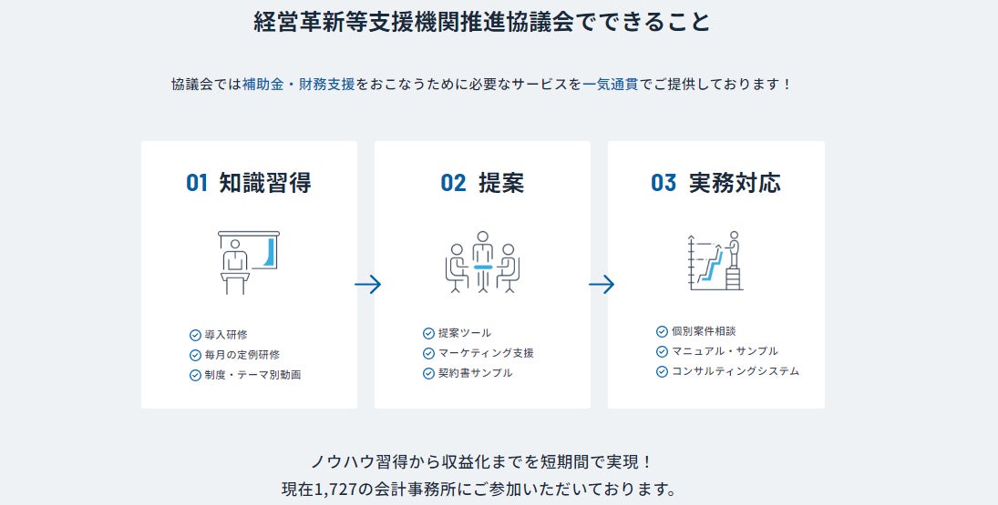 経営革新等支援機関推進協議会に参画している全国1700の会員事務所より、中小企業の発展を目指し、各種補助金支援、融資・資金繰り支援、優遇税制支援の実績を残した事務所を称える賞です。実績とともに、推進協議会の各種サービスの利用をしていることも選出基準のひとつです。推進協議会AWARDという表彰制度のなかの1つであり、毎年推進協議会が主催しているイベント「推進協議会フォーラム」にて発表を行っています。