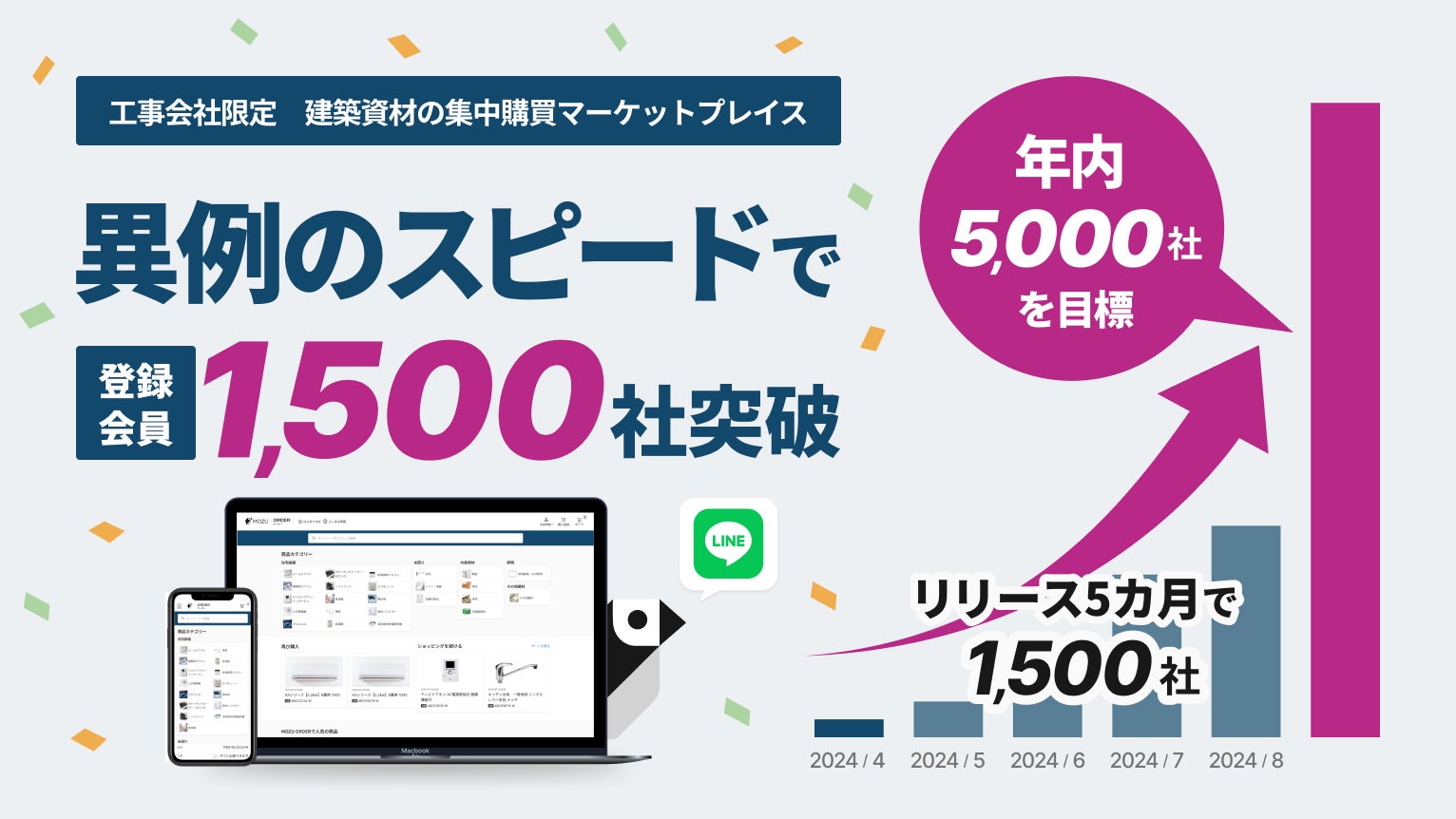 小規模な工務店や職人を対象に、集中購買により資材を格安で購入することが可能なインターネット非公開のマーケットプレイス「MOZUオーダー」は、リリースして5ヶ月ながらも、掲載商品数が2,000点を超え、1,500会員まで拡大しております。業界内での口コミにより会員数が急増しており、今年中に5,000会員まで拡大することを目標とし、さらに会員向けにAI・OCR技術を用いた革新的な新規サービスを提供していくことで、ビジョンである「産業変革で現場をおもしろく」を実現していきます。
