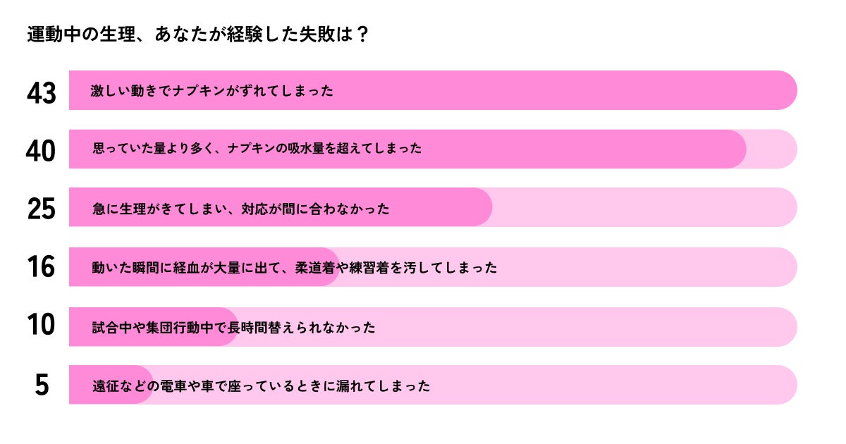 今回は、柔道5チームの選手の皆さまにアンケートを実施。その結果からも、運動中の生理の対応に関する悩みは多いことがわかりました。