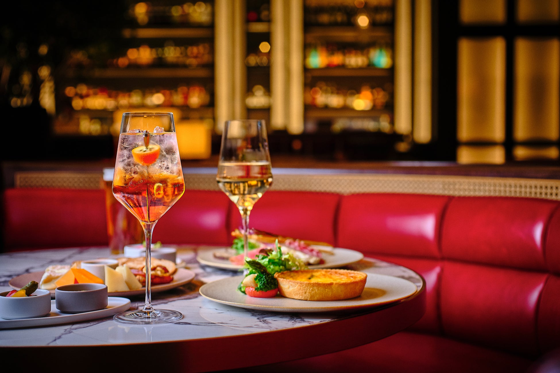 日が沈むとともに、ラウンジはよりダイナミックでモダンな雰囲気に包まれます。新宿の“昼と夜”の二面性からインスピレーションを得たシグネチャーカクテルを中心に、長く愛され続けるクラシックカクテルの豊富なラインアップ、さらにワインやシャンパンも豊富に取り揃えております。世界の名だたるバーのコンサルティングを手掛けるFling Bar Services社と当ホテルのバーチームが共同で手がけたこれらのクラフトカクテルは、夜の新宿の活気と魅力を見事に体現し、新宿の歴史と現代のエネルギーが交錯する街の鮮やかな二面性を鮮明に表現しています。