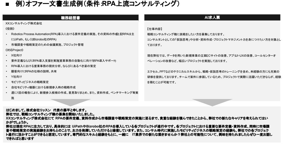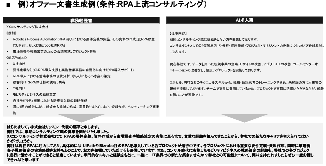 ・候補者ごとに最適化されたダイレクトリクルーティングメール文章をAI自動化を提供:わずか5分で作成