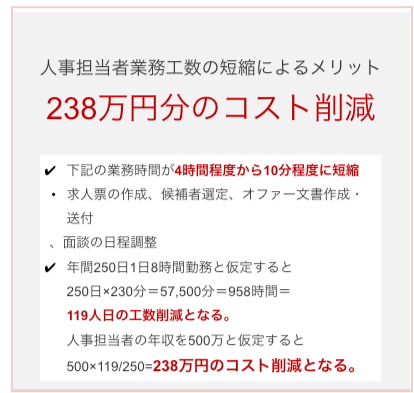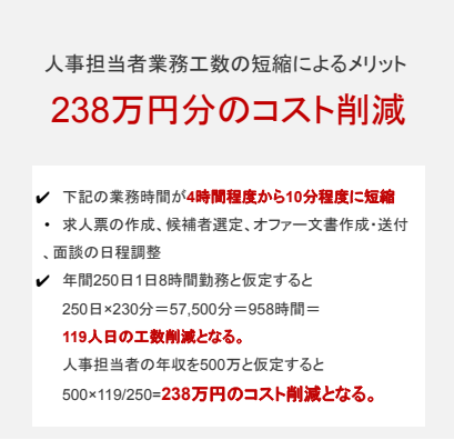 実験的に社内や社外で試験的に導入したところ、社員がスカウト業務から解放され、求職者のサポートにより業務工数を工数削減できることが確認できました。