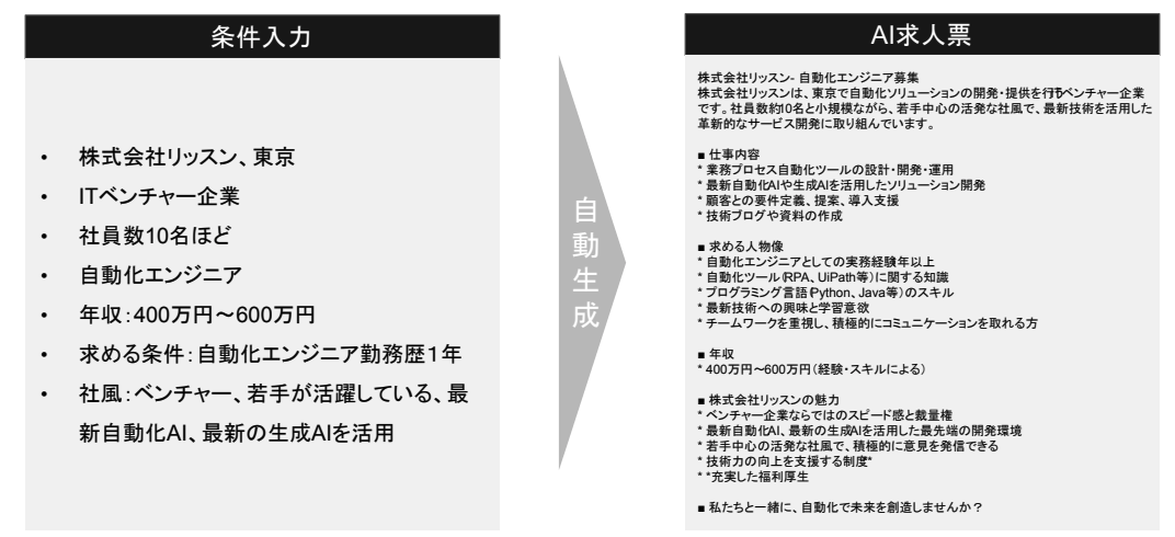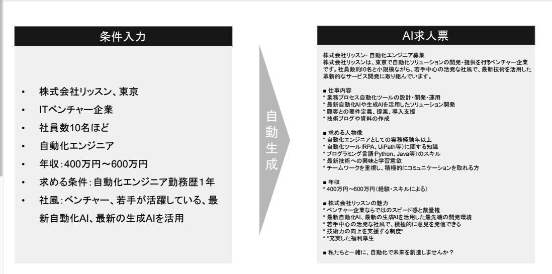 ・短時間で効率的に求人票をAI自動化作成:わずか1分で作成