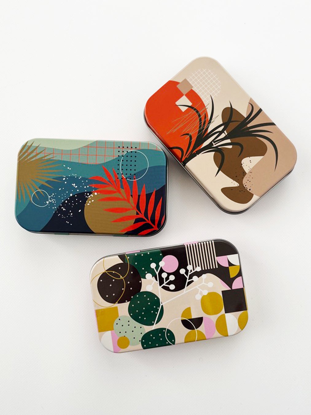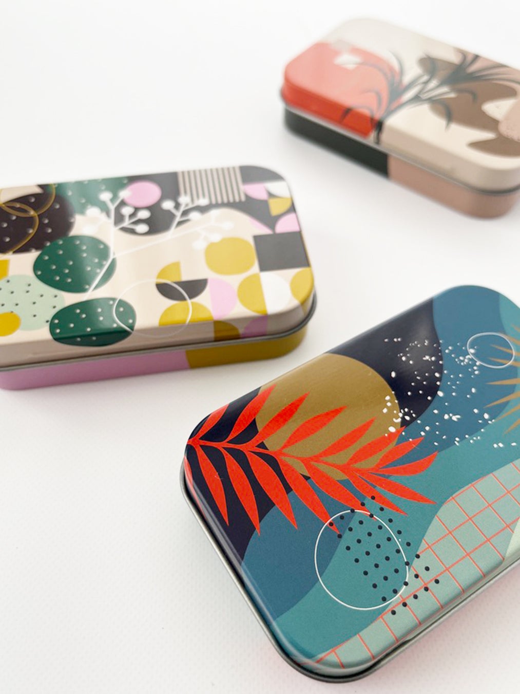 ・レトロ感、高級感あふれる缶は、手の平サイズで持ち歩きができ、食べ終わった後には小物入れとしてお使いいただけます。