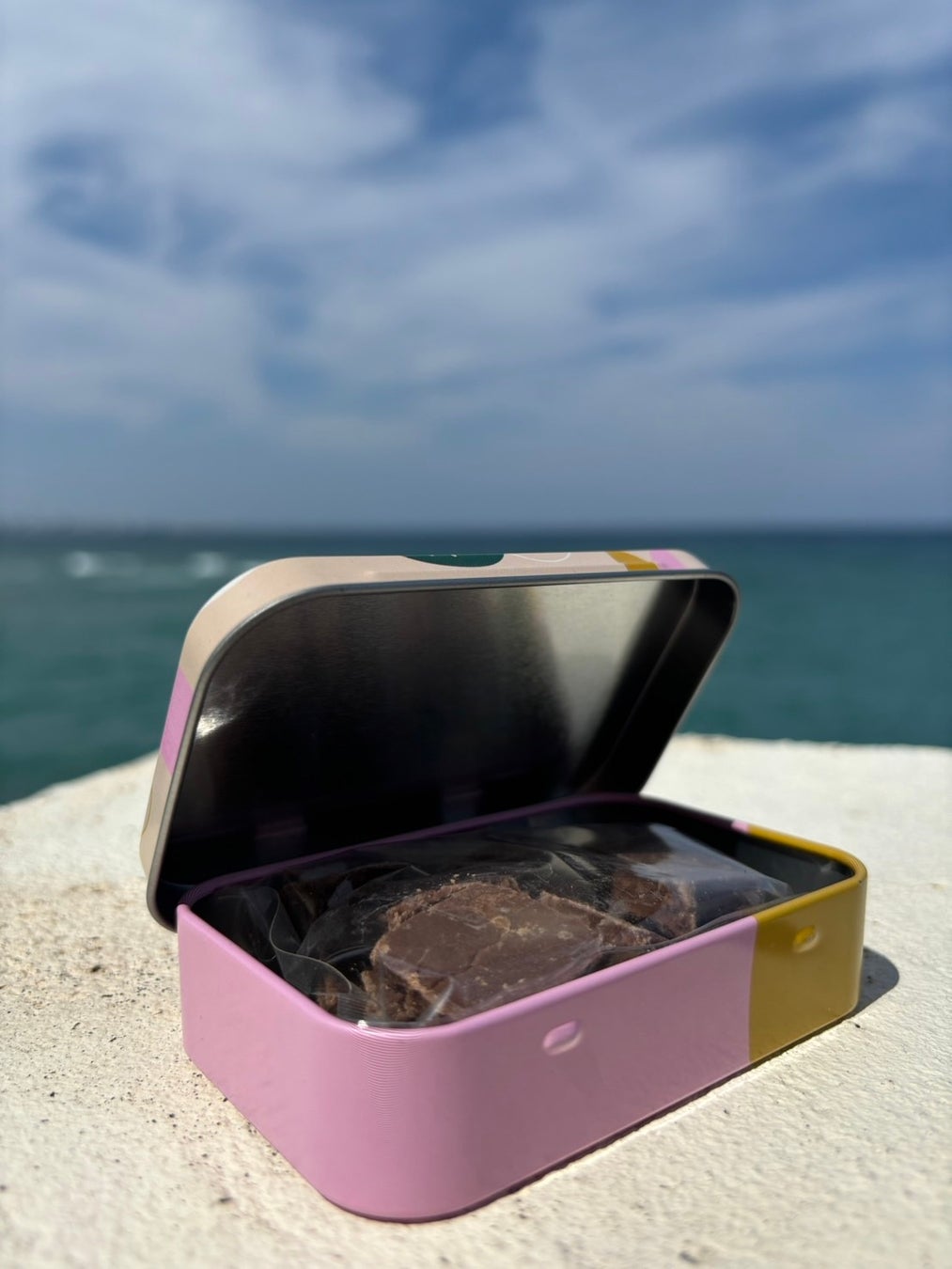 ある日、海外出張中にふと目に留まった、ひとつの缶。 その瞬間、ひらめいたのです。 「この缶なら、黒糖の魅力を、もっと素敵に届けられるかもしれない。」