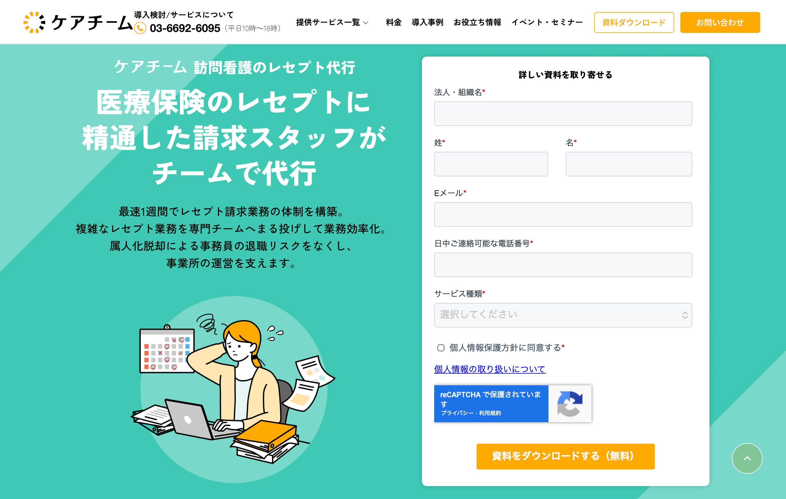 事業内容:訪問看護特化のレセプト代行・請求代行サービス「ケアチーム」運営、訪問看護に特化した制度判断基盤「ケアチームX」の開発・運営