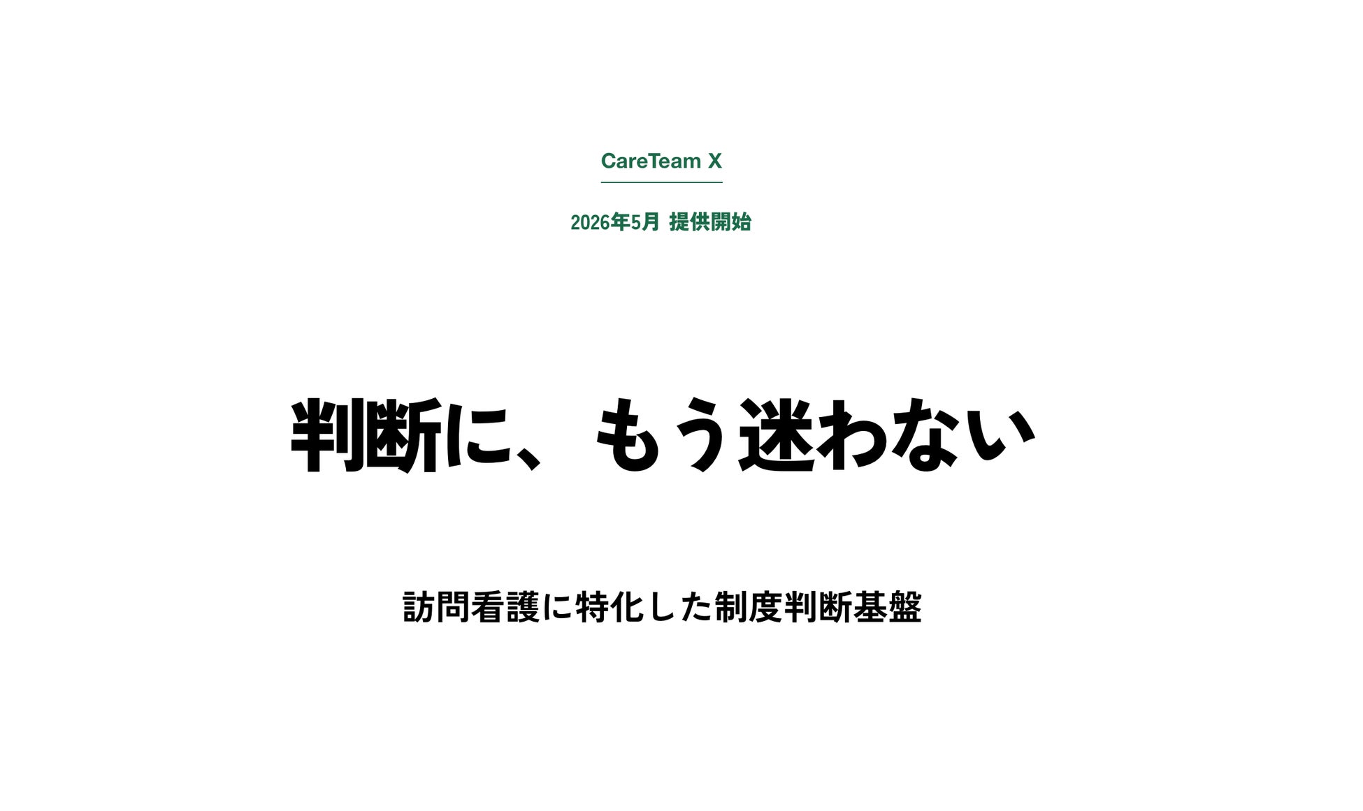 ケアチームXは、私たちが日々の運用で積み重ねてきた判断の知見を、基盤として構造化したものです。訪問看護の請求業務には、入力を効率化する仕組みだけでなく、判断そのものを支える基盤が必要です。