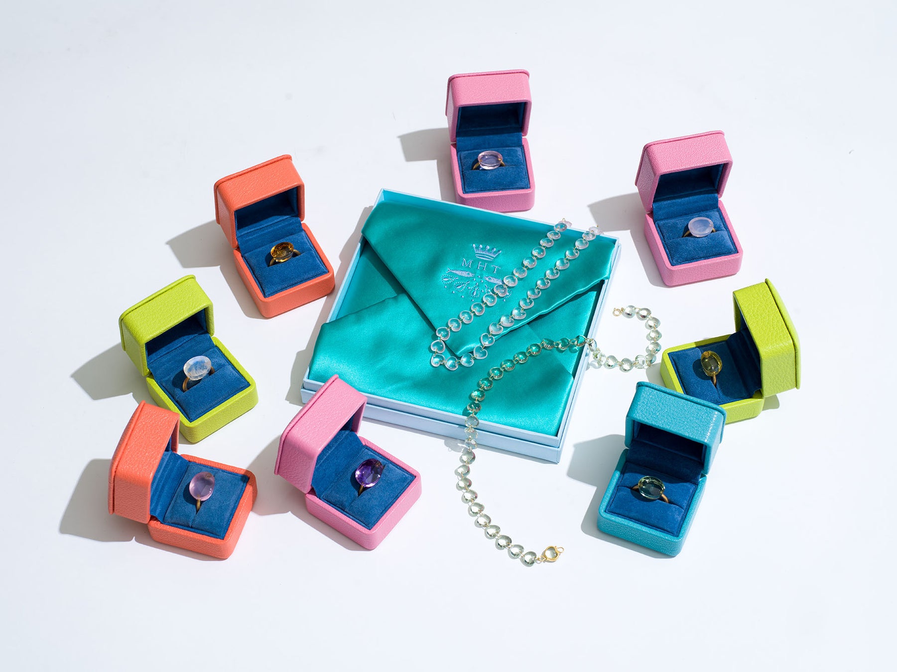 Marie-Hélène de Taillacの別注ネックレスと、特別に集められたブランドでも人気の高いカボションリング。リングの付属BOXは先着順でお好きな色をお選びいただけます