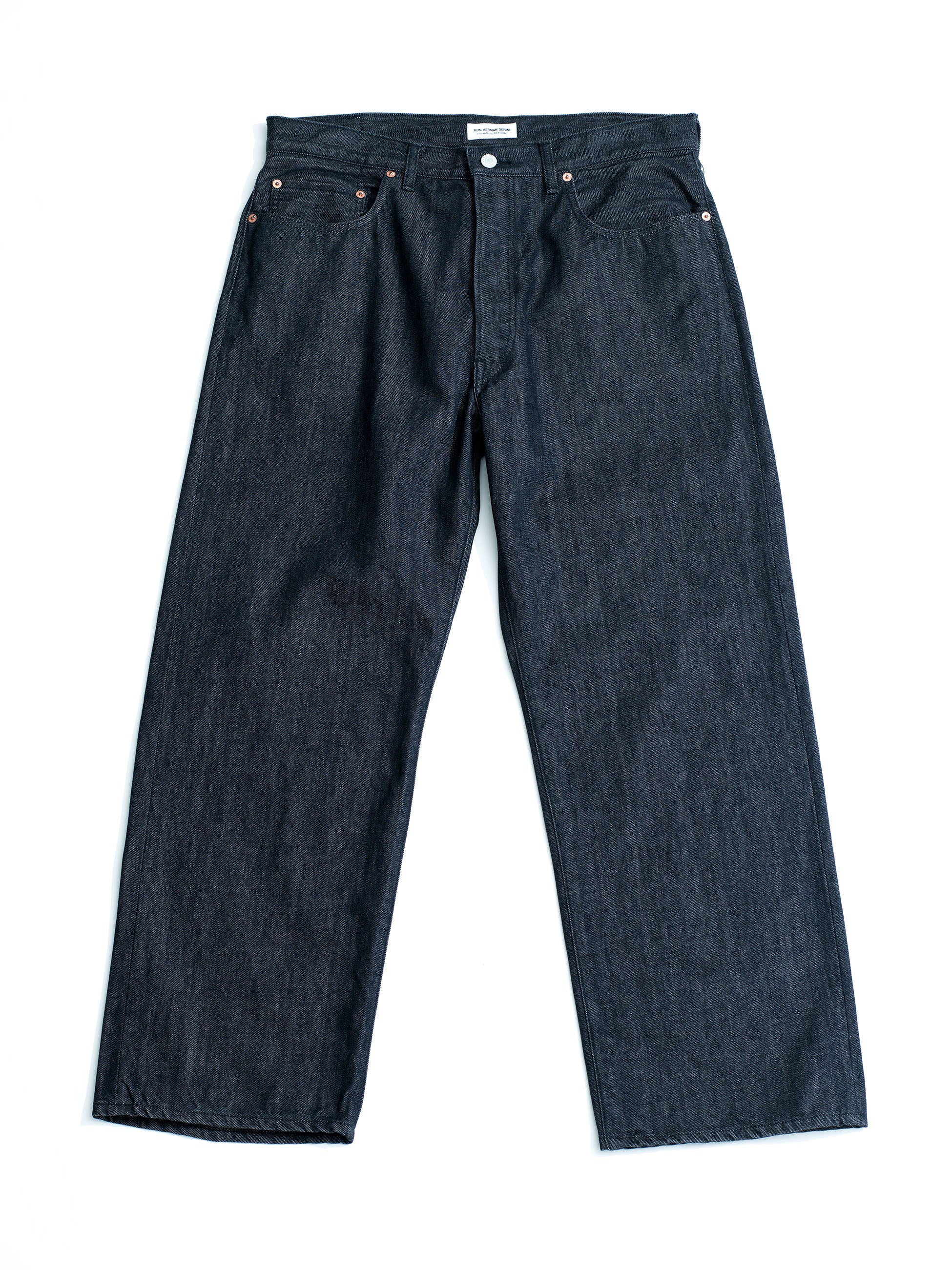 生地はCone Mills社WHITE OAK製の13.0oz BLACK DENIMを使用し、縫製は巻き縫い部分は全てUnion Specialミシンで縫製したクラシカルなデニム。ワイドシルエットのデニムはロンハーマン名古屋店限定のアイテムです