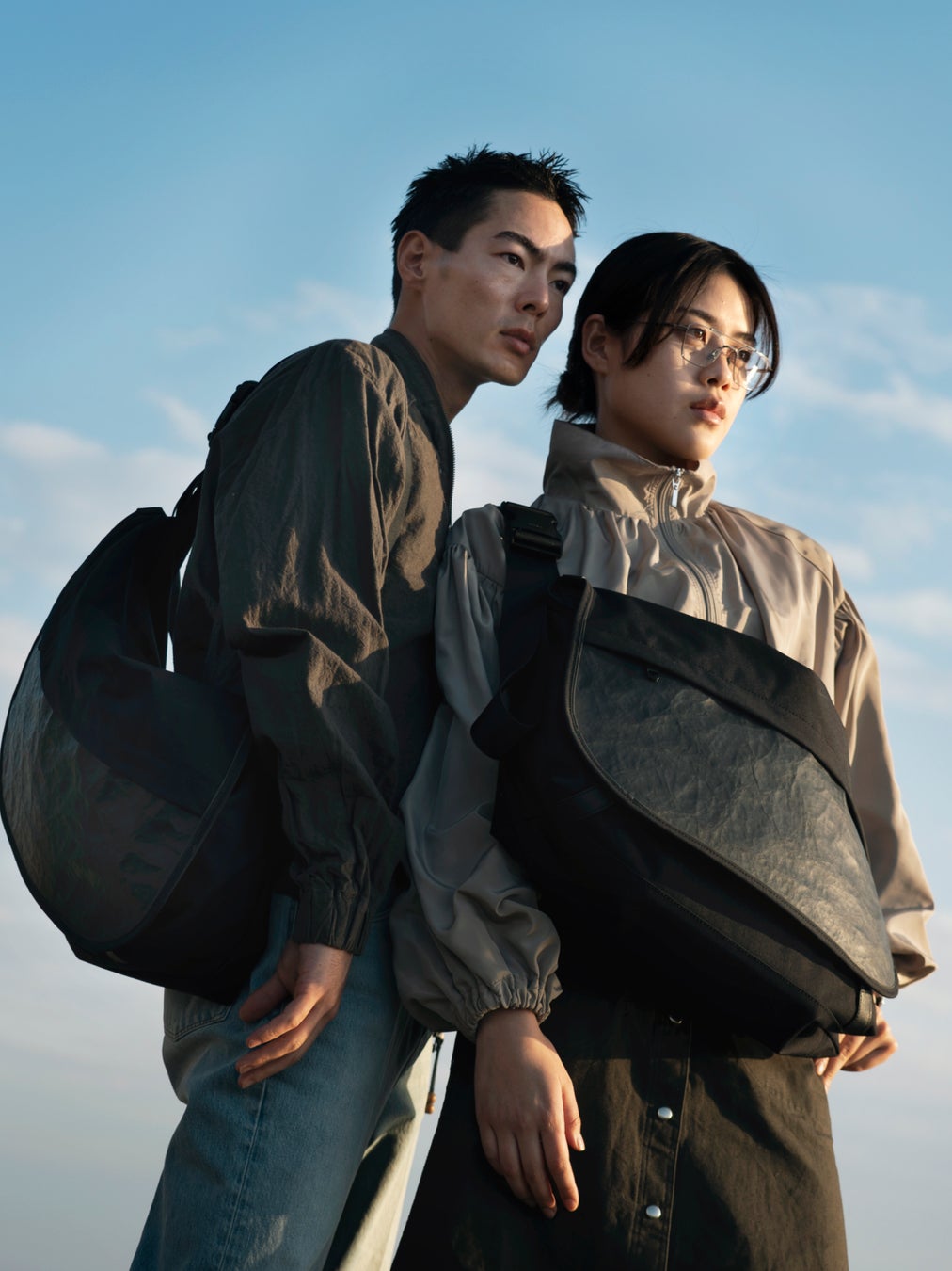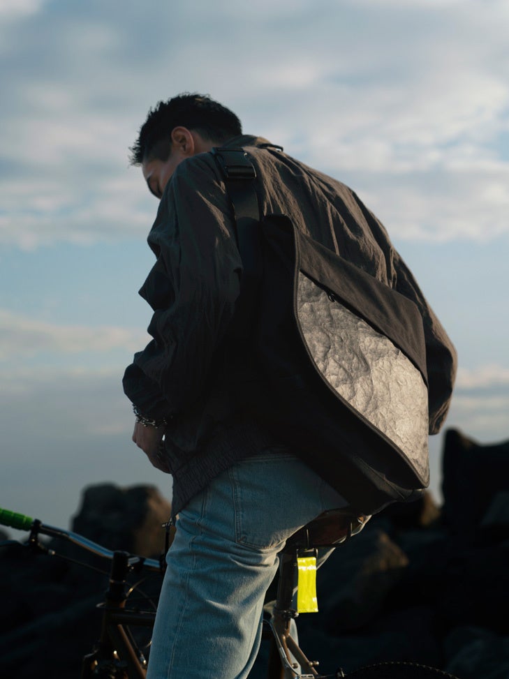 素材には、撥水性と耐久性があり軽量なナイロン素材「500D スパンライクナイロン」を使用。マットな風合いと綿のような毛羽立ち感のあるテクスチャーでナチュラルな上質感を演出します。牛革の「BLADE NEO FSDX(ecco leather社製)」は、薄く漉いた牛革の裏にデュポン社のリサイクル可能な高密度ポリエチレン素材「Tyvek®(タイベック®)」を貼り合わせた、軽くしなやかな素材。表面の革はややマットな仕上がりで、使い込むごとにつやが増し、柔らかくなじんできます。「Tyvek®」の表情が革にも表れ、特徴的なしわ感のある独特の表情が魅力的です。