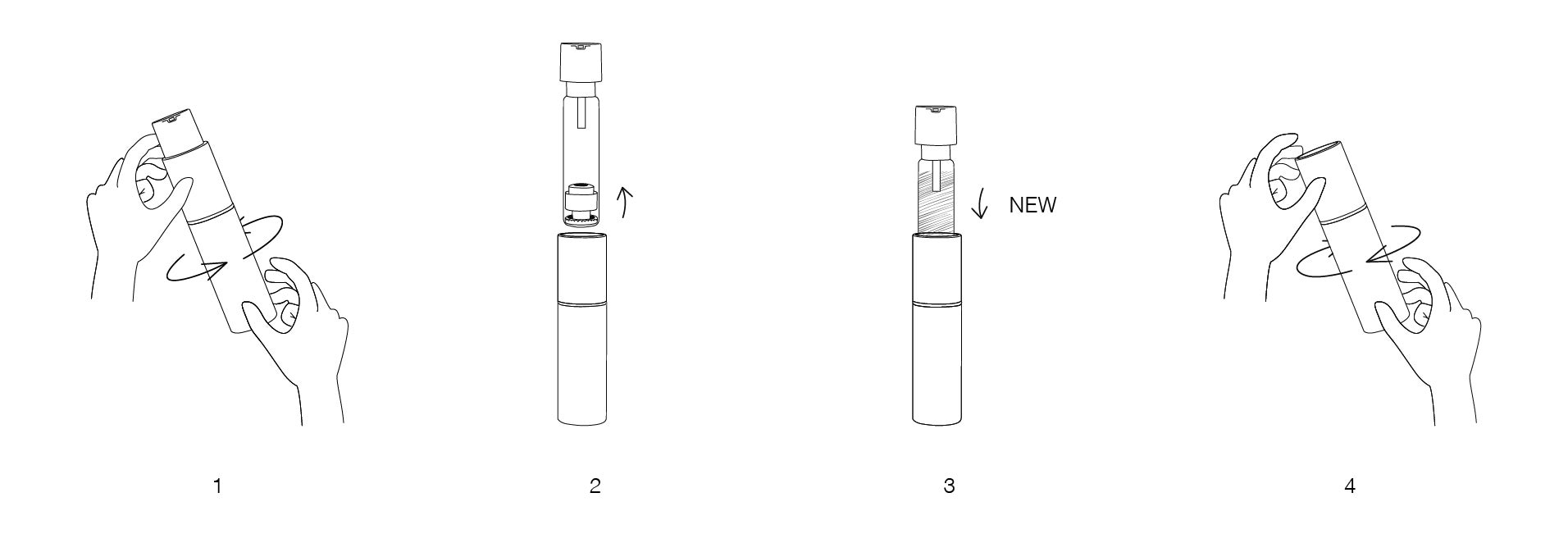 ④ 容器上部を時計回りに回し、緩みのないよう締めれば詰め替え完了です。
