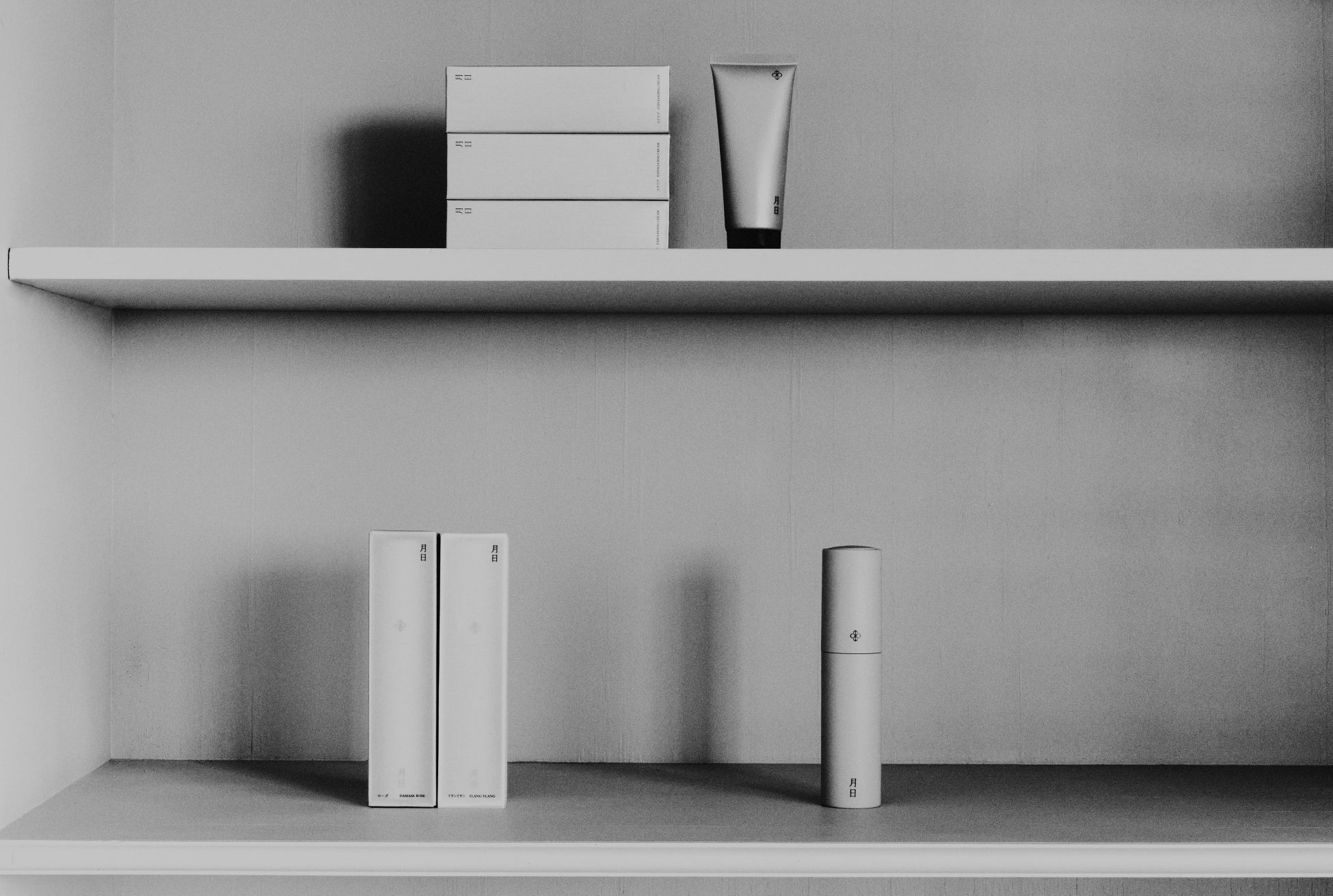 目に付く位置に置いて毎日使っていただけるよう、パッケージデザインはシンプルに仕上げました。控えめにあしらわれた月日のブランドロゴは、インテリアにこだわる方にも静かに寄り添います。