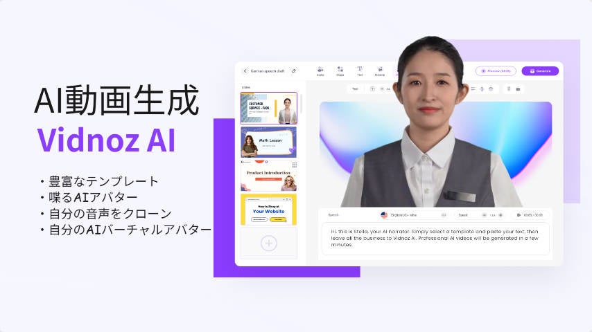 ひとながグロバール株式会社(東京都台東区上野3丁目11番5号)が運営するブランド『Vidnoz』は、無料・オンラインのAI動画生成ツール『Vidnoz AI』Ver 3.0をリリースいたしました。