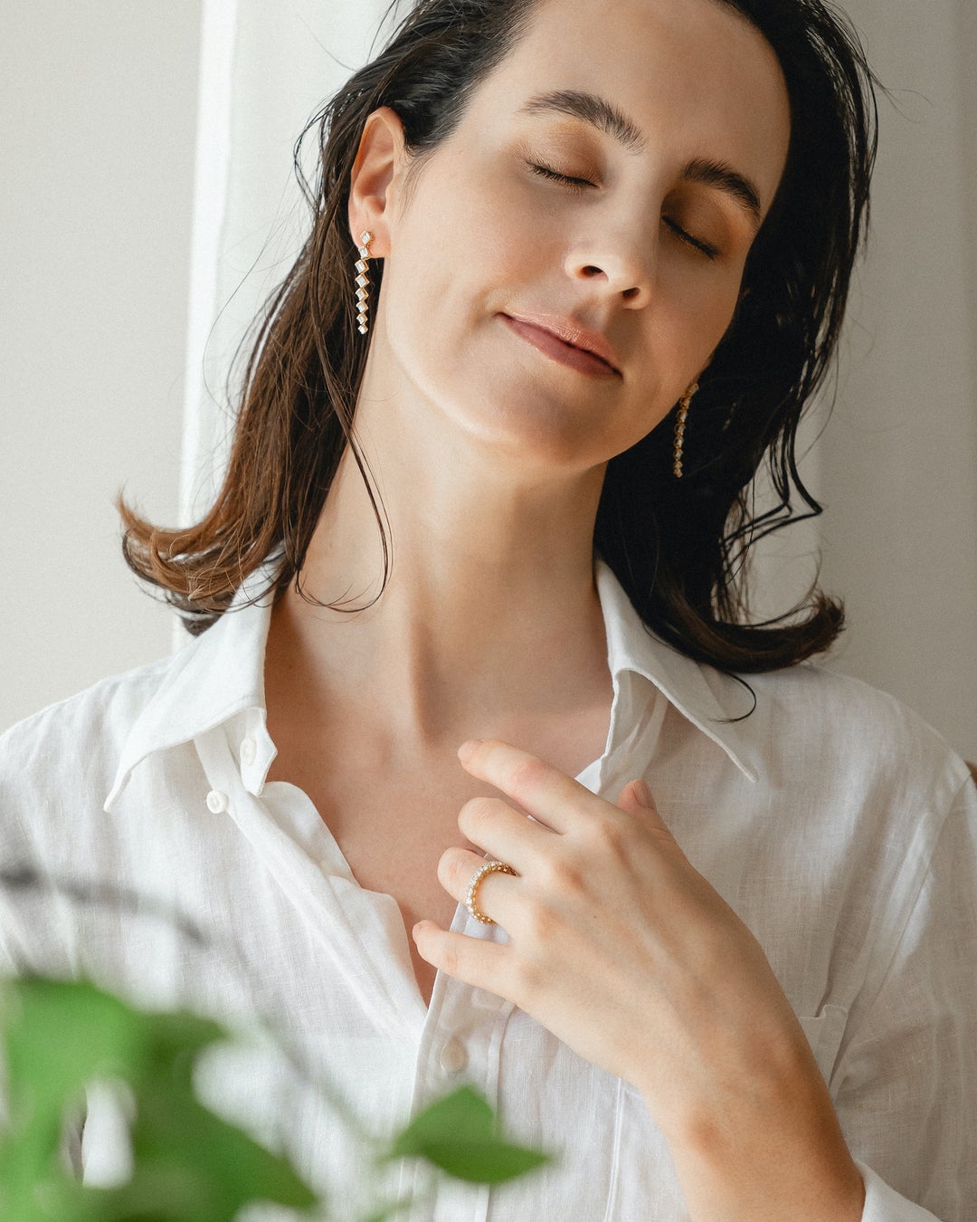 年齢を重ねても使っていけるジュエリーにこだわり、ボリューム感とモダンさのバランスにファンが多い。