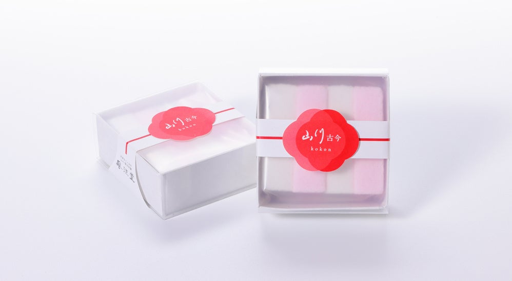 ”見直したい”と考えながらも、”伝統を踏襲したい”という思いに心が揺れ、試行錯誤し、今回の本格的な発売開始に至るまで10年を要しました。『山川古今』は、松江の伝統銘菓として、不昧公が大切にされた山川の物語性を受け継ぎながらも、箱サイズで7×7センチとお手に取りやすく、召し上がりやすい大きさに調製致しました。