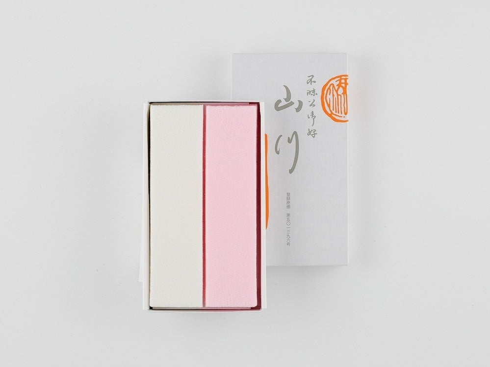 この度新しく、お手に取りやすい特小サイズを調製致しました。菓銘は『山川古今(やまかわここん)』。古(いにしえ)から今(いま)へ。今までも、これからも長く続いて欲しいという想いを込めて、名付けました。